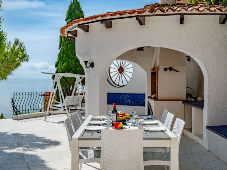 "Casela", 8-room villa 400 m2 on 2 levels. Spacious, comfortable and beautiful furnishings: open large living/dining room with satellite TV, digital TV and fan. Exit to the terrace. 1 room with 1 french bed (1 x 180 cm, length 200 cm), air conditioning and forced-air heating. Exit to the terrace.