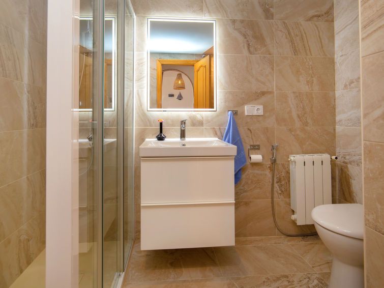 beautiful apartment with lovely sea view, but the mattress of the double bed is of very poor quality and is very badly there Lack of stove, knife that cuts and a cutting board Lack of wine glasses, and a parasols on the balcony would be welcome. The Sofa is made of hardwood, impossible to stay on