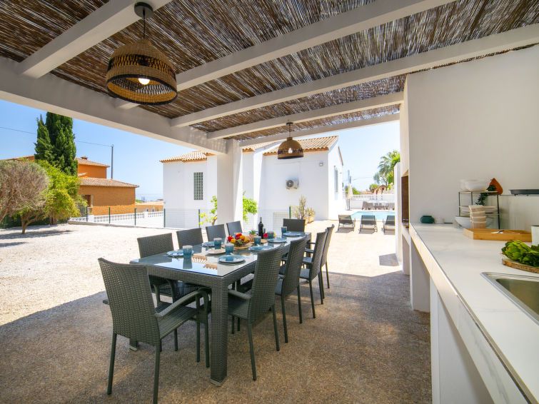 "Guadalete", 7-room villa 282 m2 on 2 levels, south facing position. Renovated in 2025, comfortable and modern furnishings: living/dining room with digital TV, air conditioning and forced-air heating. 1 room with 1 french bed (150 cm, length 190 cm). 1 room with Dressing room with 1 french bed (160 cm, length 190 cm), bath/shower/WC, air conditioning and forced-air heating.