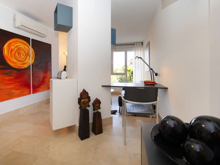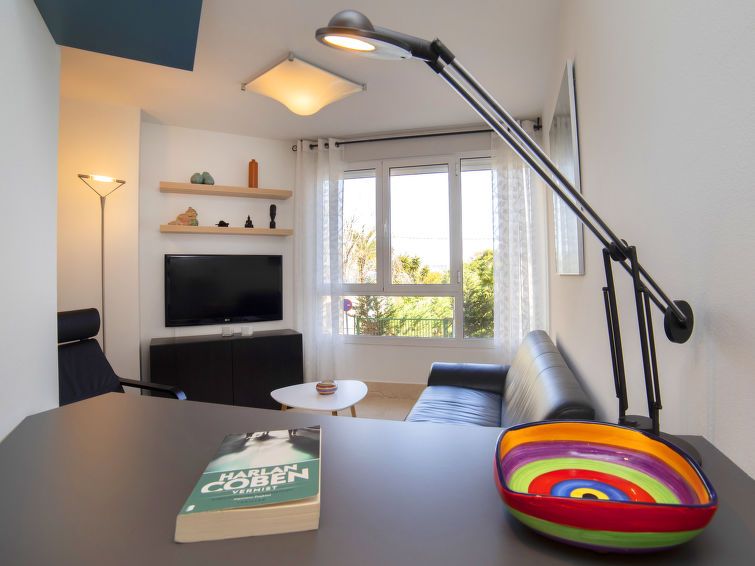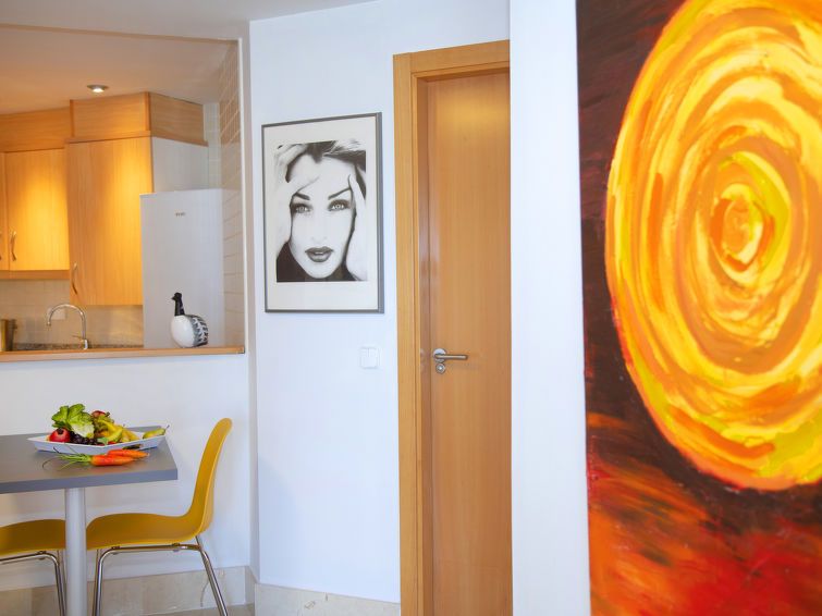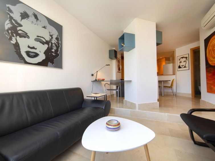 "Horizonte", 2-room apartment 56 m2, on the mezzanine. Comfortable furnishings: living/dining room 20 m2, on 2 levels with digital TV, air conditioning and forced-air heating. 1 room with 1 french bed (150 cm, length 190 cm), digital TV, air conditioning and forced-air heating. Open kitchen (oven, dishwasher, 4 ceramic glass hob hotplates, kettle, microwave, freezer, electric coffee machine).