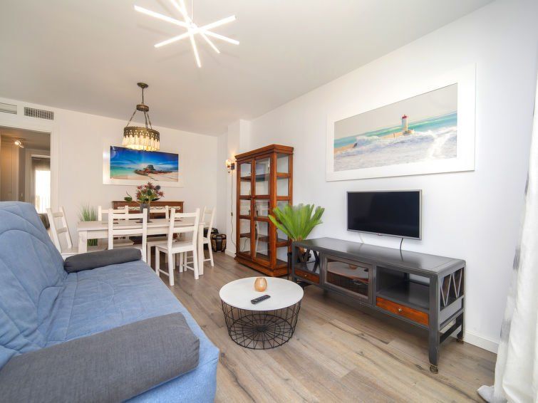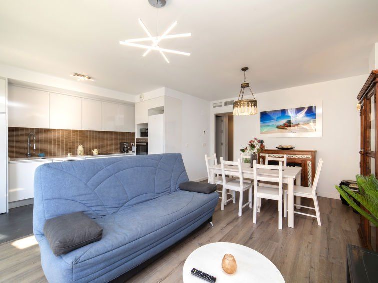 "Isea Calpe", 3-room apartment 93 m2 on 6th floor. Object suitable for 2 adults + 2 children. Spacious and bright, comfortable and beautiful furnishings: living/dining room with digital TV, air conditioning and forced-air heating. Exit to the terrace. 1 room with 1 french bed (1 x 135 cm, length 190 cm), shower/WC, air conditioning and forced-air heating.