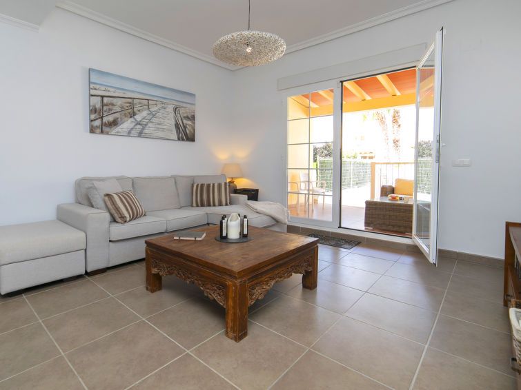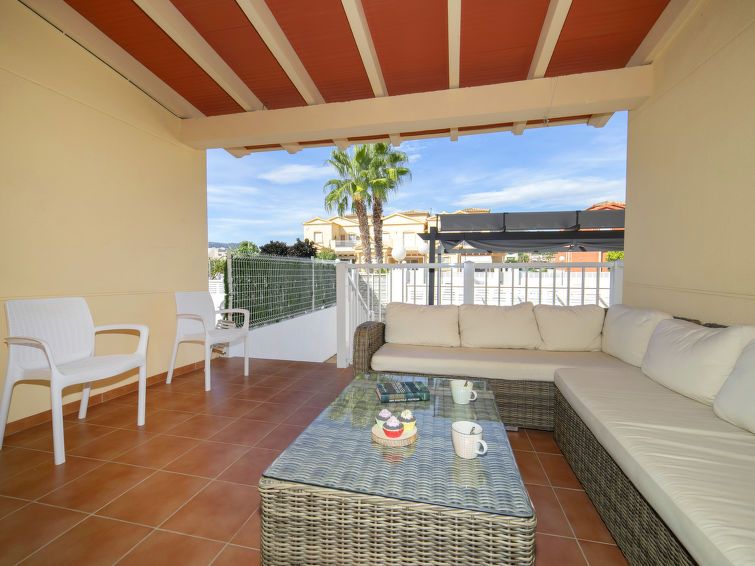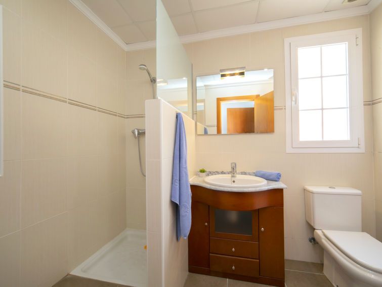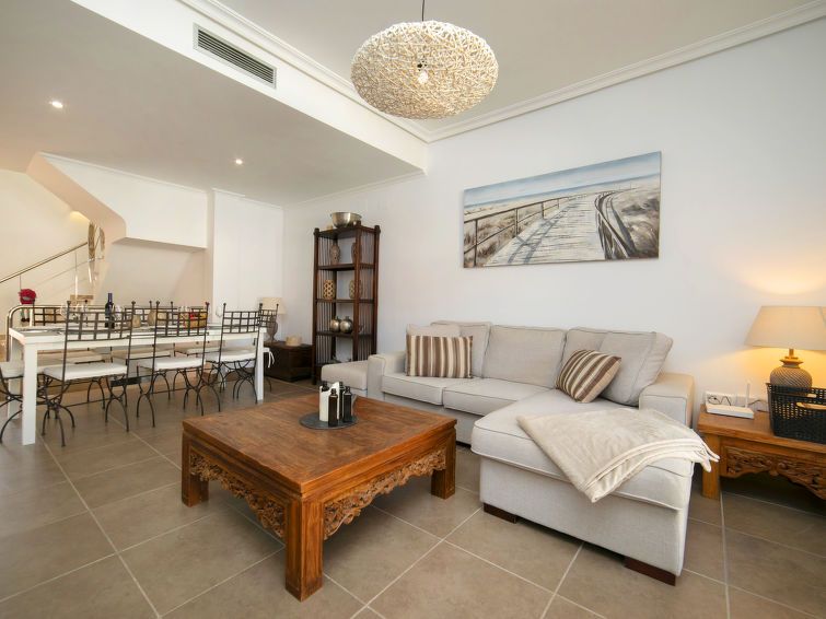 "Jazmines V", 5-room terraced house 224 m2. Spacious and bright, comfortable and beautiful furnishings: open living/dining room with digital TV, air conditioning and forced-air heating. Exit to the terrace. 1 room with 1 double bed (2 x 80 cm, length 200 cm), shower/bidet/WC, air conditioning and forced-air heating.
