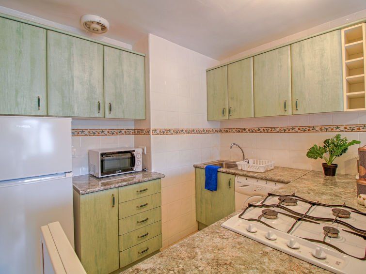 "Las Cabañas", 2-room bungalow 60 m2. Practical and comfortable furnishings: open living/dining room with 1 sofabed, digital TV and fan. Exit to the terrace. 1 room with 2 beds (90 cm, length 190 cm), air conditioning and forced-air heating. Open kitchen (4 gas rings, toaster, kettle, microwave, freezer, electric coffee machine).