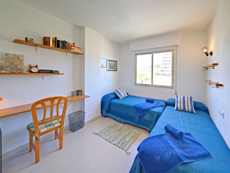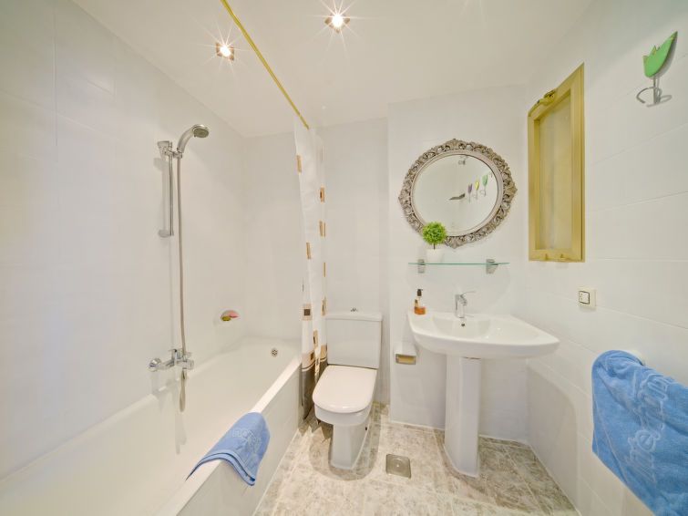 "Mare Nostrum", 3-room apartment 75 m2 on 4th floor. Object suitable for 2 adults + 2 children. Spacious and bright, practical and comfortable furnishings: open living/dining room with digital TV and fan. 1 room with 1 french bed (1 x 135 cm, length 190 cm), fan. 1 room with 2 beds (90 cm, length 190 cm).