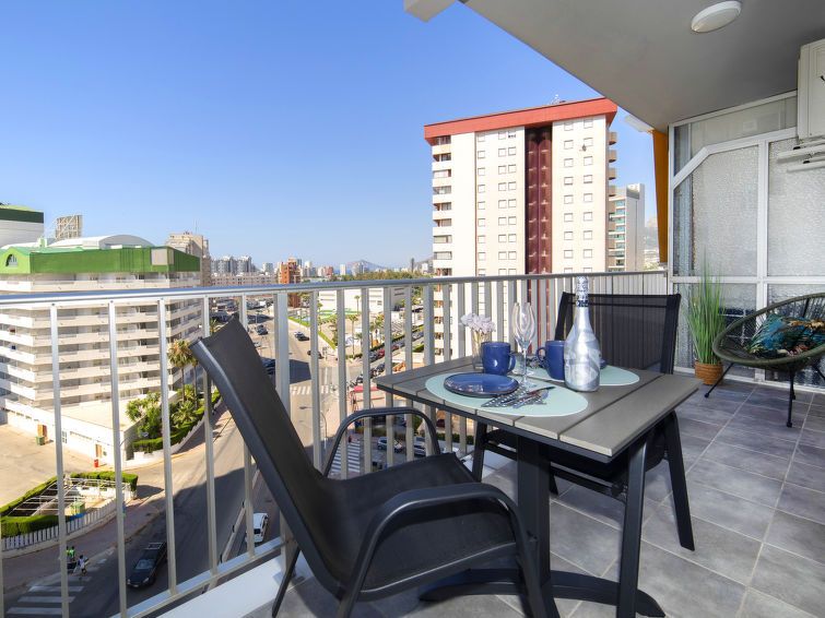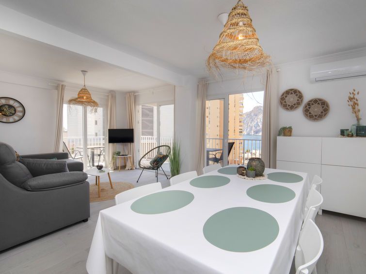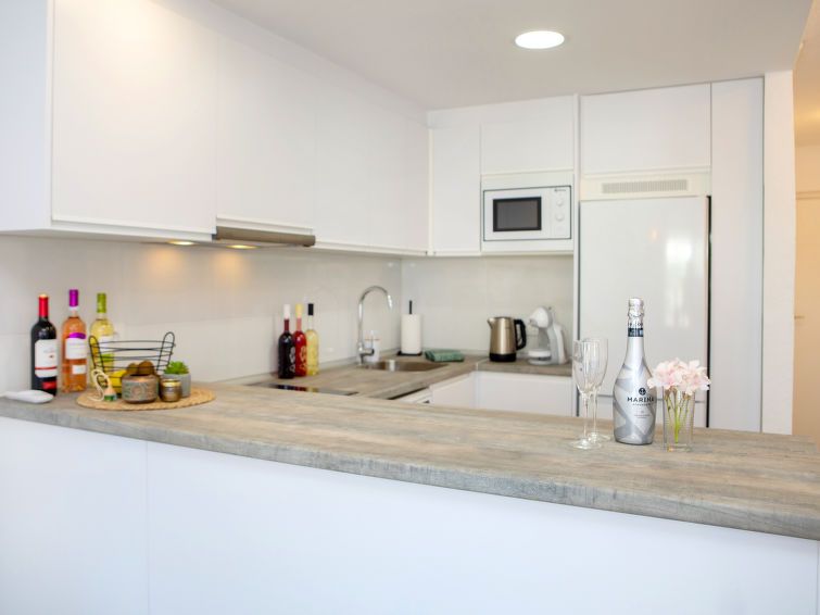 "Miramar 03", 3-room apartment on 8th floor. Spacious and bright, fully renovated in 2022, beautiful and modern furnishings: living/dining room with satellite TV, digital TV, air conditioning and forced-air heating. Exit to the terrace. 2 rooms, each room with 1 french bed (1 x 150 cm, length 190 cm).