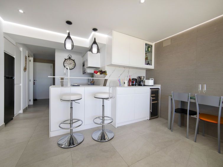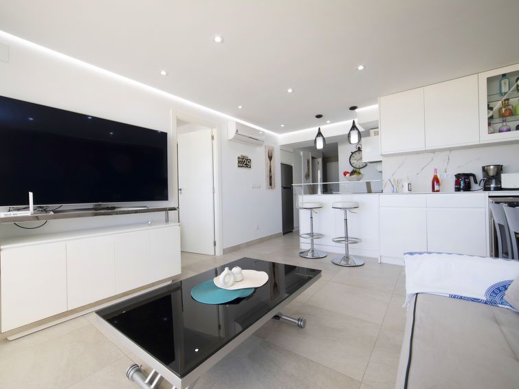 Beautiful apartment in a lovely location right on the beach… immaculately clean… equipped with everything you would need in the kitchen…the balcony is spacious and perfect for people watching… the sandy beach is literally on your doorstep and is cleaned every day…. The resort is friendly and bustling… loads of restaurants, bars and shops.