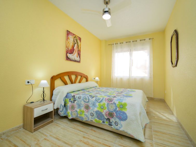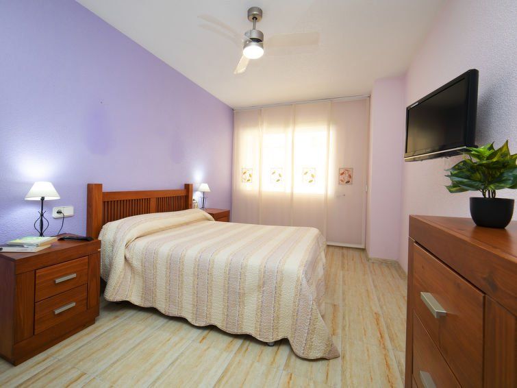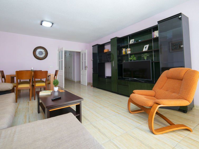 "Perlamar 4", 5-room apartment 135 m2 on 1st floor. Object suitable for 7 adults. Practical and cosy furnishings: living/dining room with dining table and digital TV. Exit to the terrace. 3 rooms, each room with 1 french bed (150 cm, length 190 cm), fan. 1 room with 1 bed (90 cm, length 190 cm), fan.