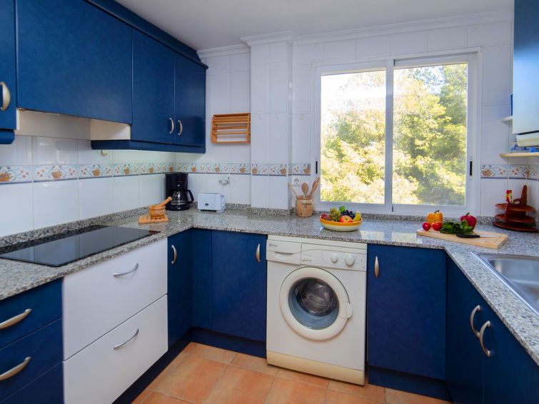 "Pueblo Casanova", 4-room apartment 90 m2 on 1st floor. Comfortable and cosy furnishings: living/dining room 25 m2 with digital TV, air conditioning and forced-air heating. Exit to the terrace. 1 room with 1 french bed (150 cm, length 190 cm), air conditioning and forced-air heating.