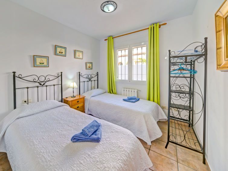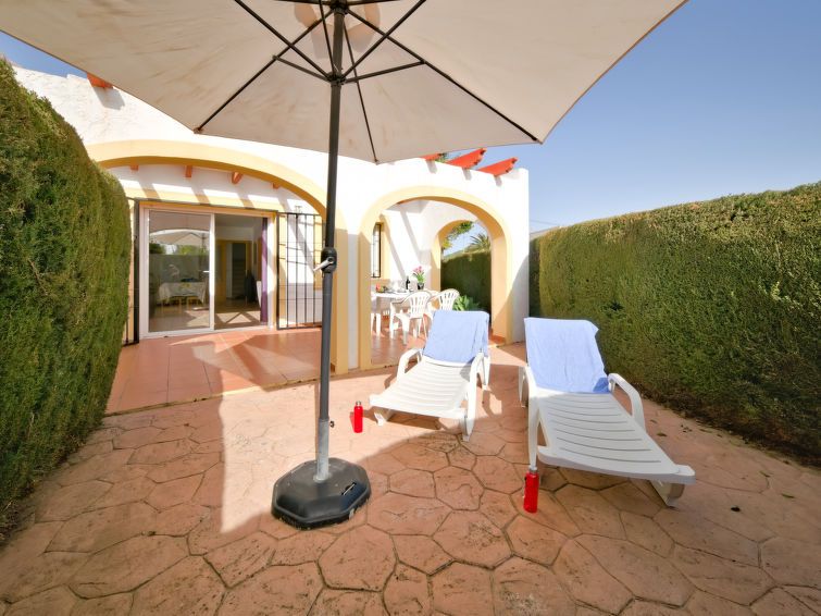 "Puerta de Calpe 16", 4-room terraced house 115 m2 on 2 levels. Practical and cosy furnishings: living/dining room with 1 folding bed (80 cm, length 180 cm), dining table, TV, satellite TV, digital TV, air conditioning and forced-air heating. Exit to the terrace. 1 room with 2 beds (90 cm, length 190 cm).
