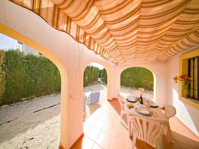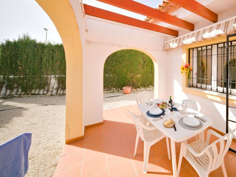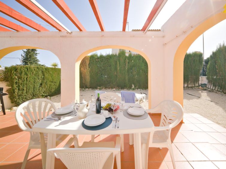 "Puerta de Calpe 31", 4-room semi-detached house 120 m2 on 2 levels. Comfortable furnishings: living/dining room with 1 folding bed (80 cm, length 180 cm), dining table, TV, satellite TV, digital TV, air conditioning and forced-air heating. Exit to the terrace. 1 room with 2 beds (90 cm, length 190 cm).