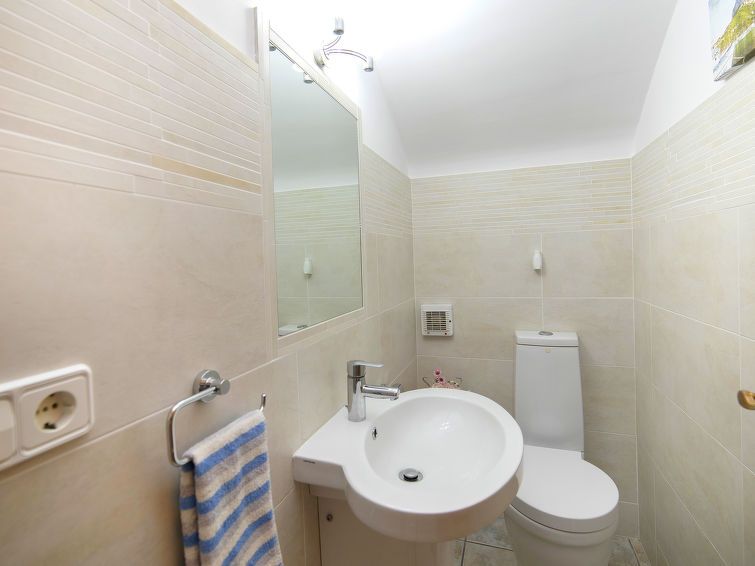 The house is located in a quiet area. The beds are fine and the air conditioning works fine. The pool is clean and has plenty of sunbeds.