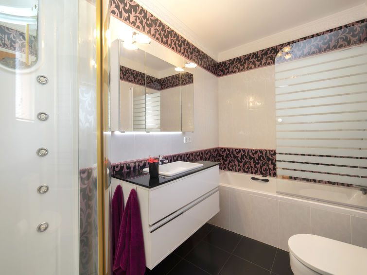 "Septimo Cielo", 5-room villa 260 m2 on 2 levels. Spacious and bright, comfortable and beautiful furnishings: open living/dining room with satellite TV, digital TV, air conditioning, fan and forced-air heating. Exit to the terrace. 2 rooms, each room with 1 double bed (1 x 160 cm, length 200 cm), air conditioning, fan and forced-air heating.