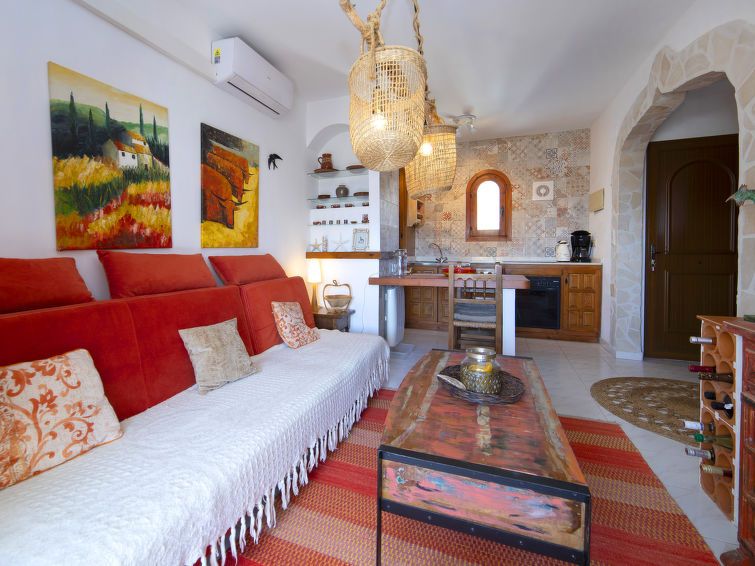"Shangrila", 2-room bungalow 36 m2 on 1st floor. Object suitable for 2 adults. Bright, beautiful and cosy furnishings: living/dining room with digital TV, air conditioning and forced-air heating. Exit to the balcony. 1 room with 1 french bed (1 x 160 cm, length 200 cm), TV and fan.
