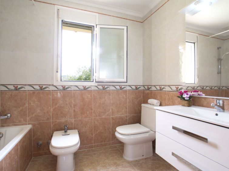 "Solpadel", 10-room villa 350 m2. Spacious: living/dining room with dining table, satellite TV, international TV channels, air conditioning and forced-air heating. 1 room with 1 french bed (135 cm, length 190 cm), air conditioning and forced-air heating. Exit to the terrace. 2 rooms, each room with 2 beds (90 cm, length 190 cm), air conditioning and forced-air heating.