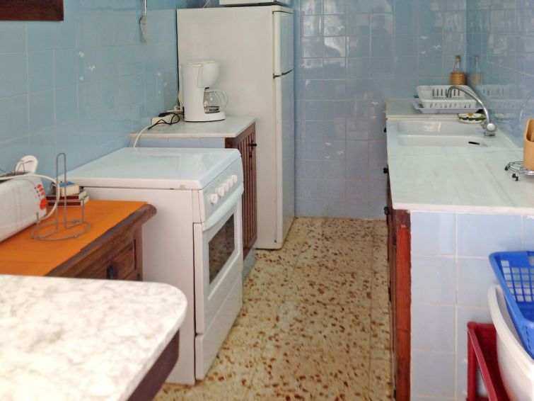 "Sunshine", 4-room house 75 to 90 m2. Living/dining room with dining table. 3 rooms, each room with 2 sleeping facilities. Open kitchen (3 hot plates, electric coffee machine). Bath/WC or shower/WC. No heating option. Terrace. Terrace furniture. Facilities: washing machine, children's high chair, baby cot.