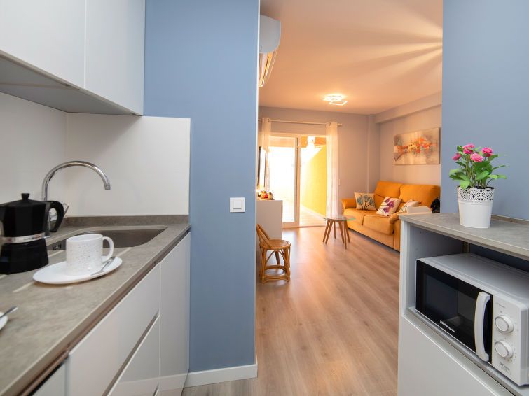 "Voramar", 2-room apartment 54 m2 on 1st floor. Object suitable for 2 adults + 2 children. Bright, comfortable and beautiful furnishings: living/dining room with 1 sofabed (150 cm, length 200 cm), TV, air conditioning and forced-air heating. Exit to the terrace. 1 room with 1 french bed (1 x 150 cm, length 200 cm).