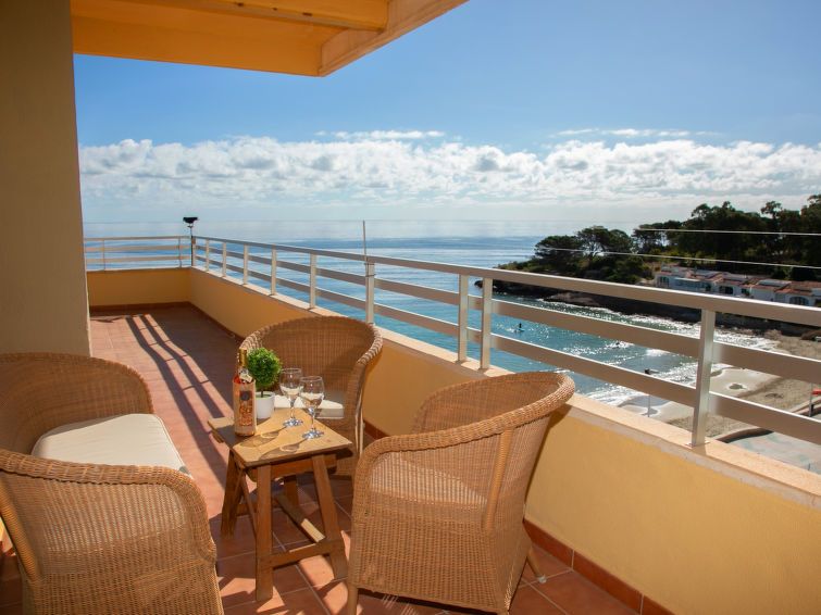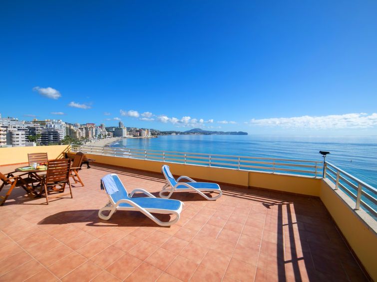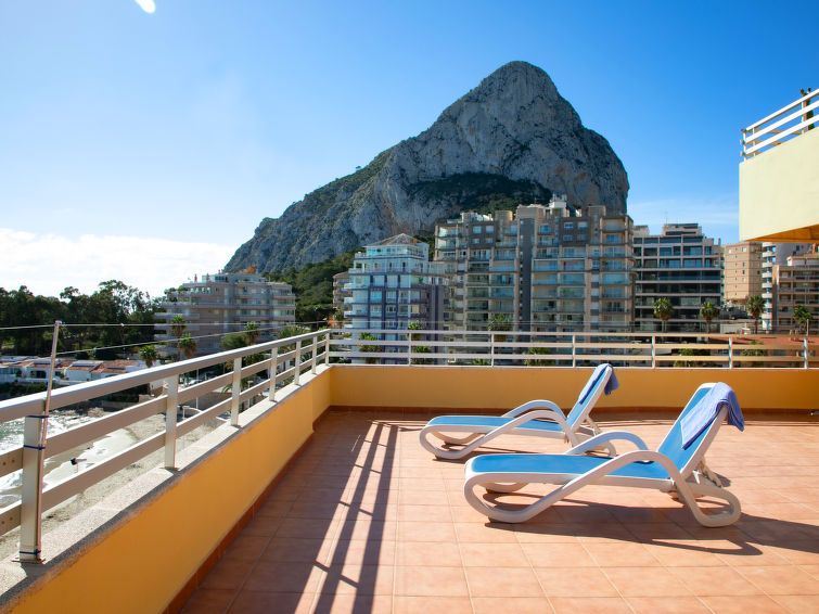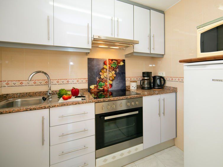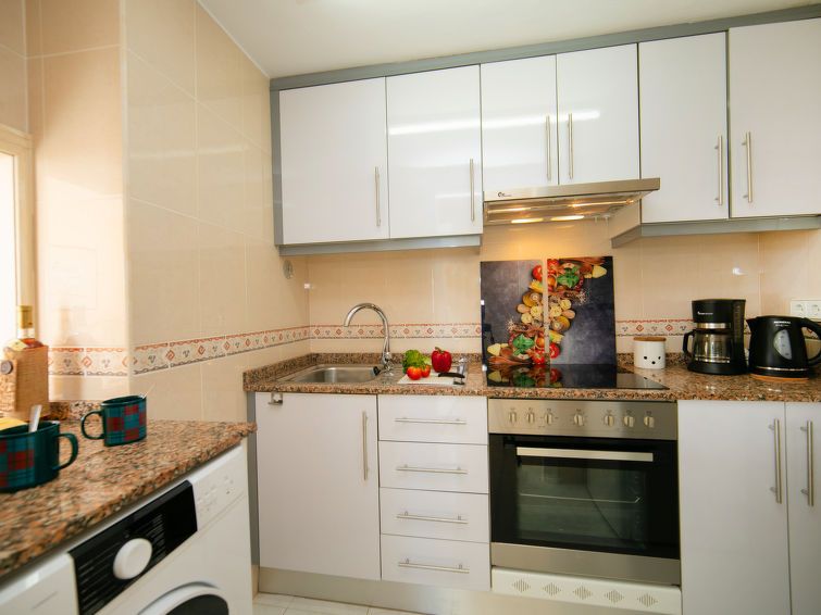 The apartment was in a lovely position , overlooking the beach and the rock. The rooms were fairly small, especially the kitchen, but there was everything you needed. It had a full size electric oven with 4 hobs , fridge, washer , microwave and grill. The balcony was massive with 7 sunbeds and 3 sets of garden furniture and a bench.