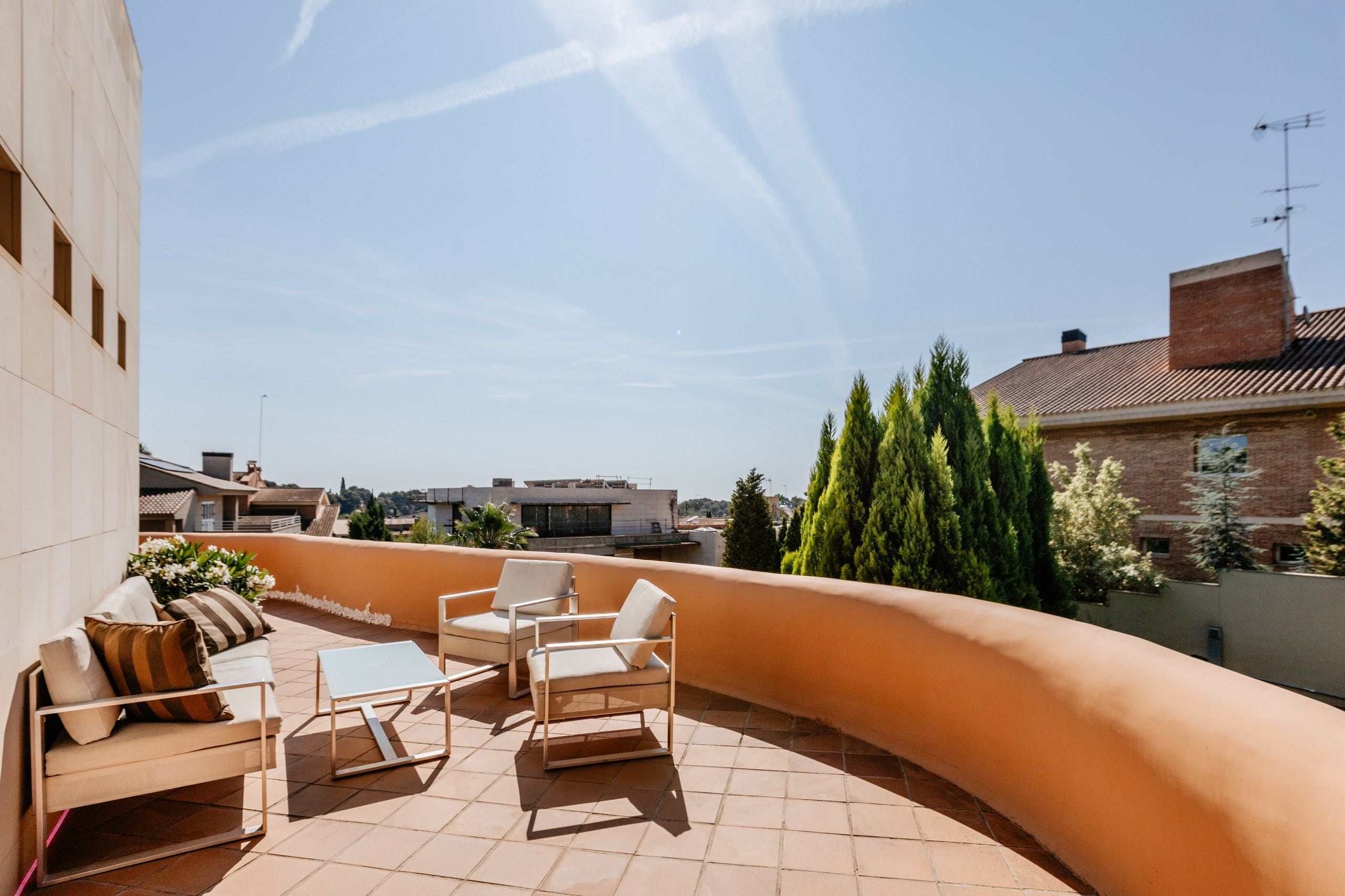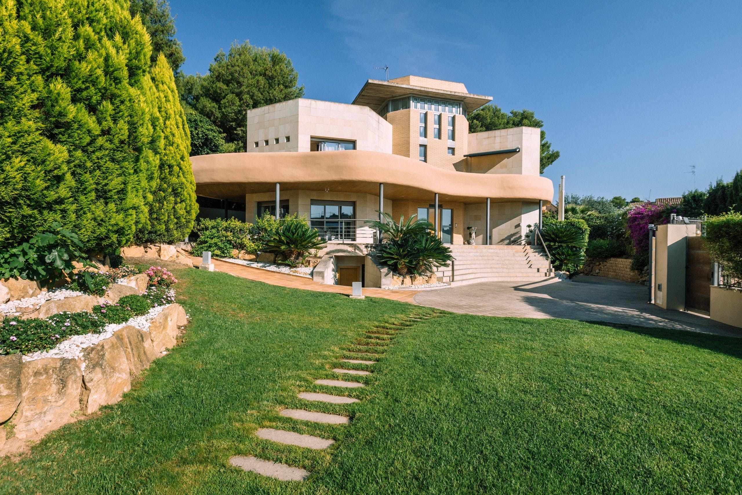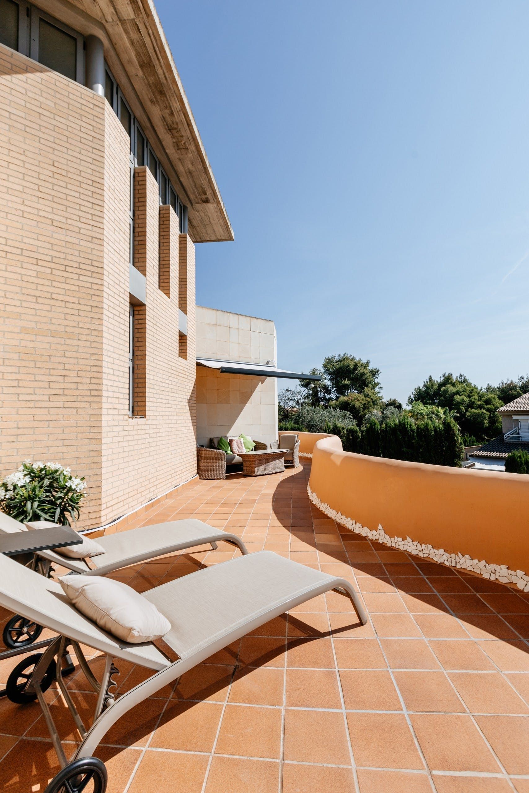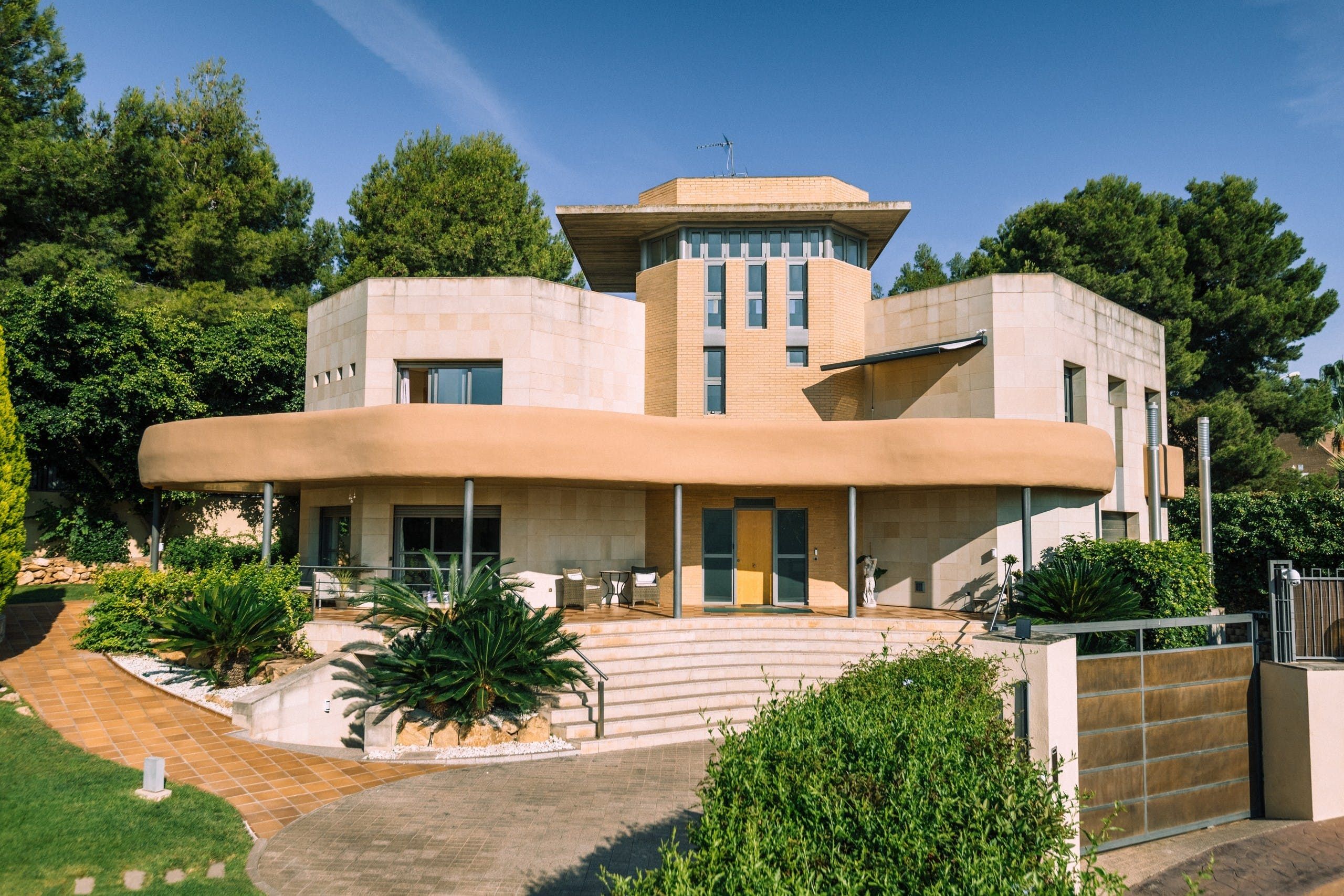 Truly a villa the whole family can enjoy, a home cinema, games room, gym and office space lie within the wall of this uniquely designed home. Though the interior style here might not be everyone's cup of tea, it's certainly comfortable and well-kept. There are also plenty of breakout spaces for guests to stretch out and relax, but our favourite aspect here is the outdoors. A private pool can be found surrounded by a lush green garden. There's also ample seating and a barbecue area. Location-wise, you're a short drive from the medieval structures of Valencia.