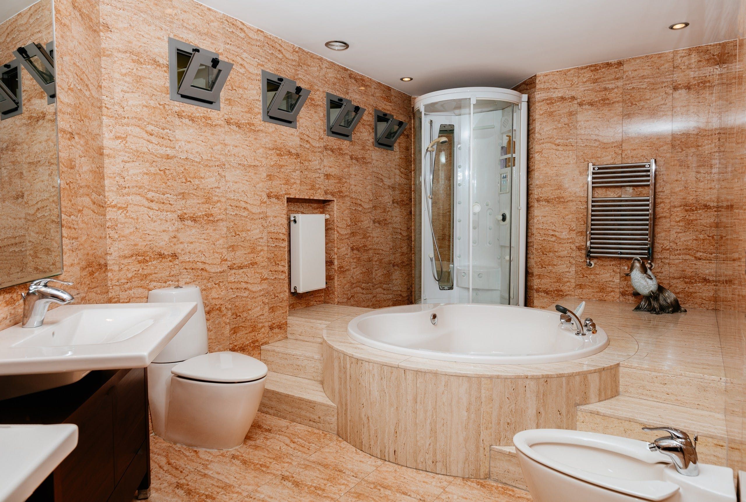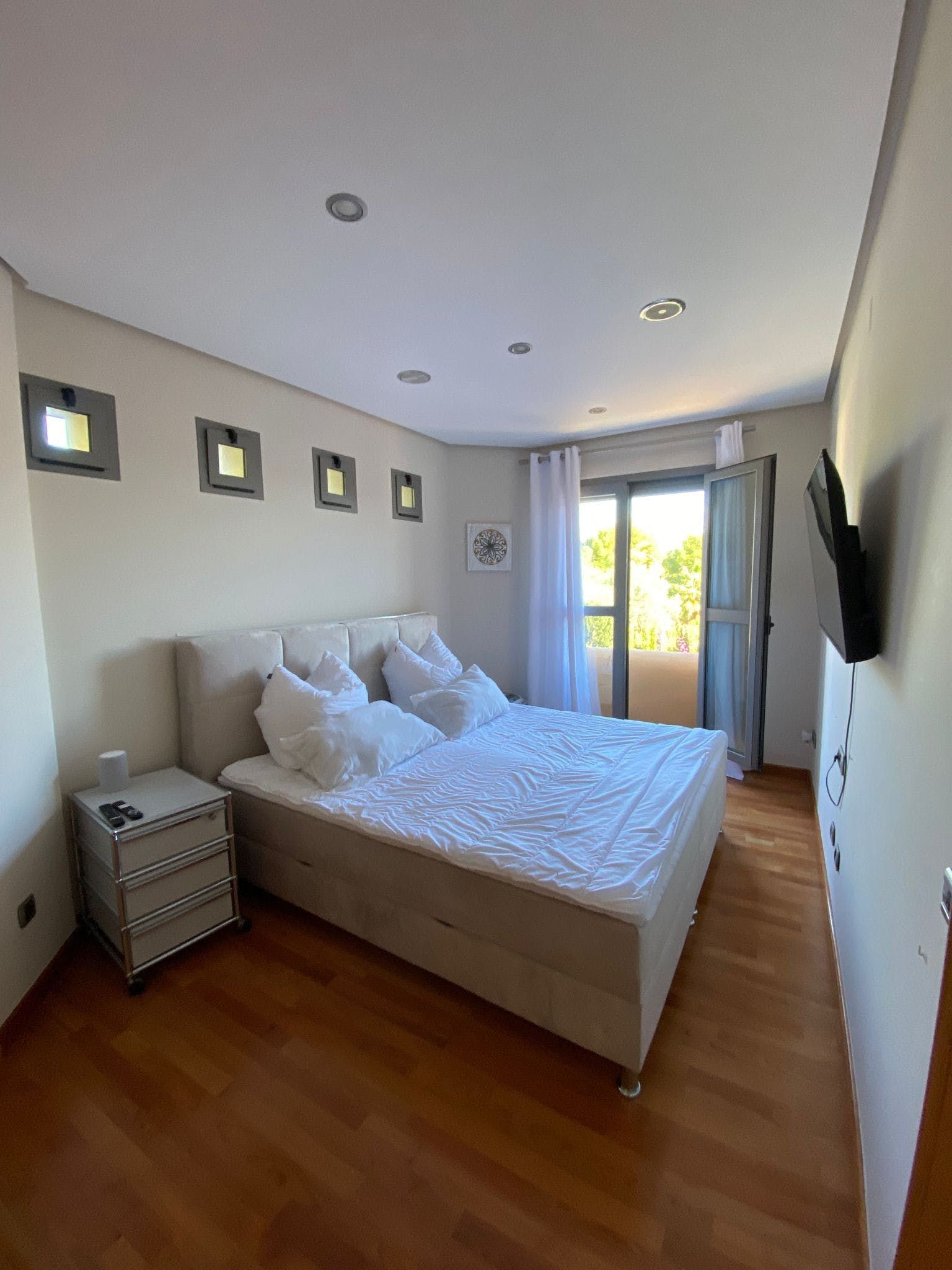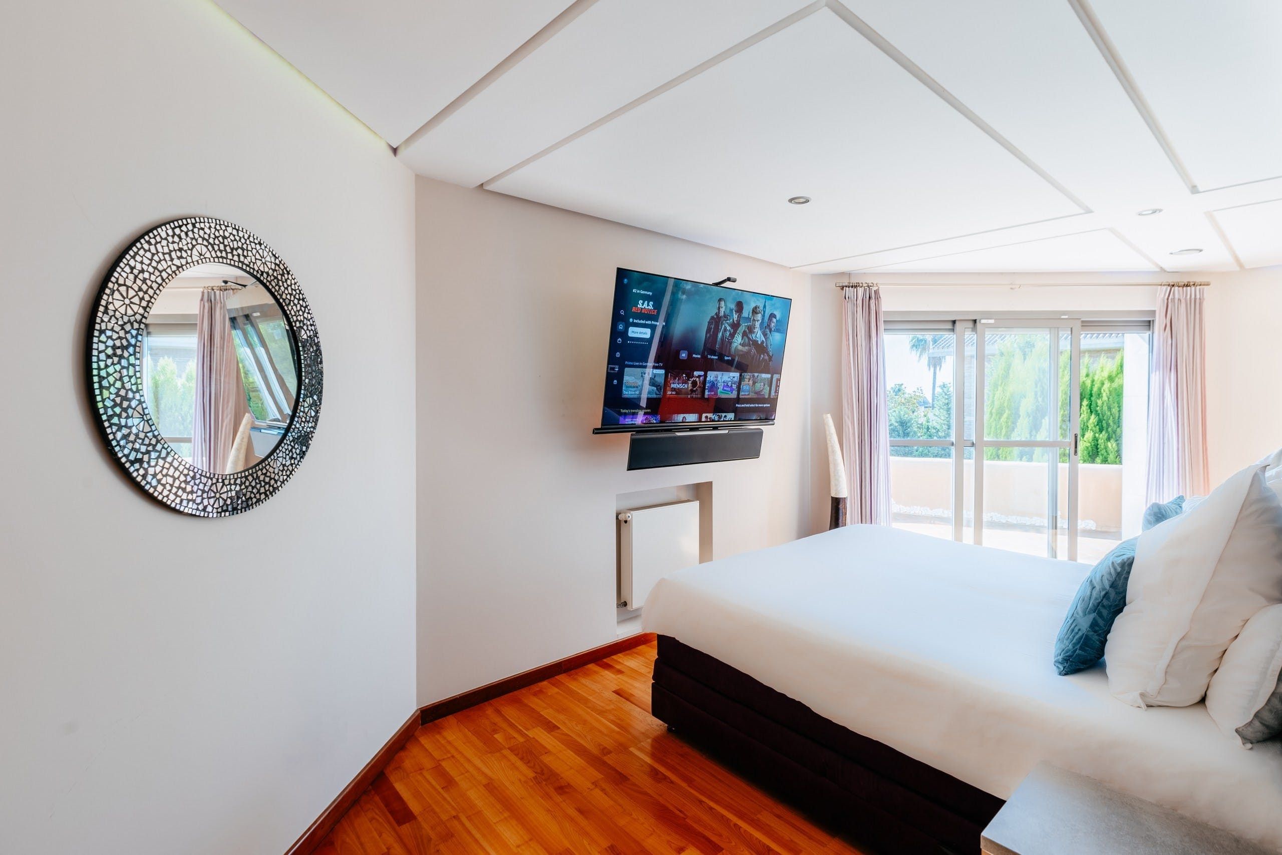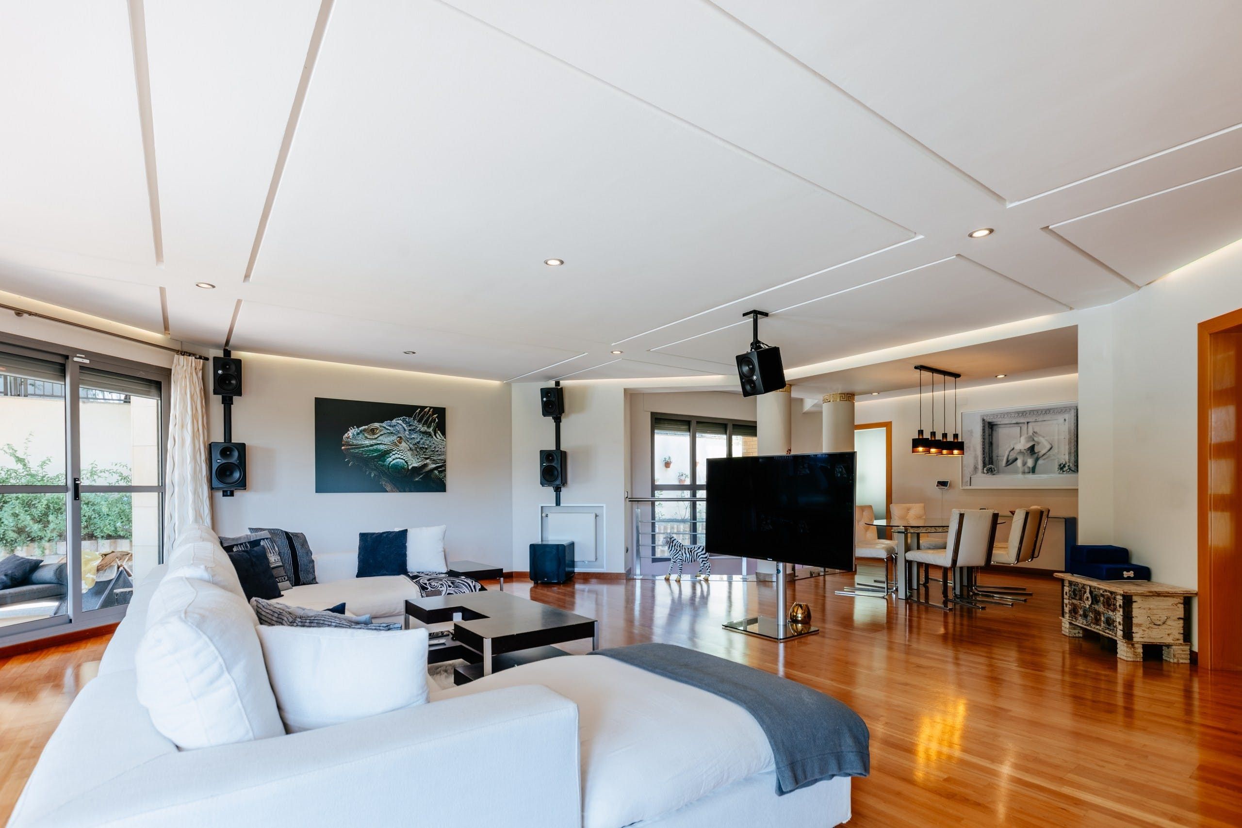 Truly a villa the whole family can enjoy, a home cinema, games room, gym and office space lie within the wall of this uniquely designed home. Though the interior style here might not be everyone's cup of tea, it's certainly comfortable and well-kept. There are also plenty of breakout spaces for guests to stretch out and relax, but our favourite aspect here is the outdoors. A private pool can be found surrounded by a lush green garden. There's also ample seating and a barbecue area. Location-wise, you're a short drive from the medieval structures of Valencia.