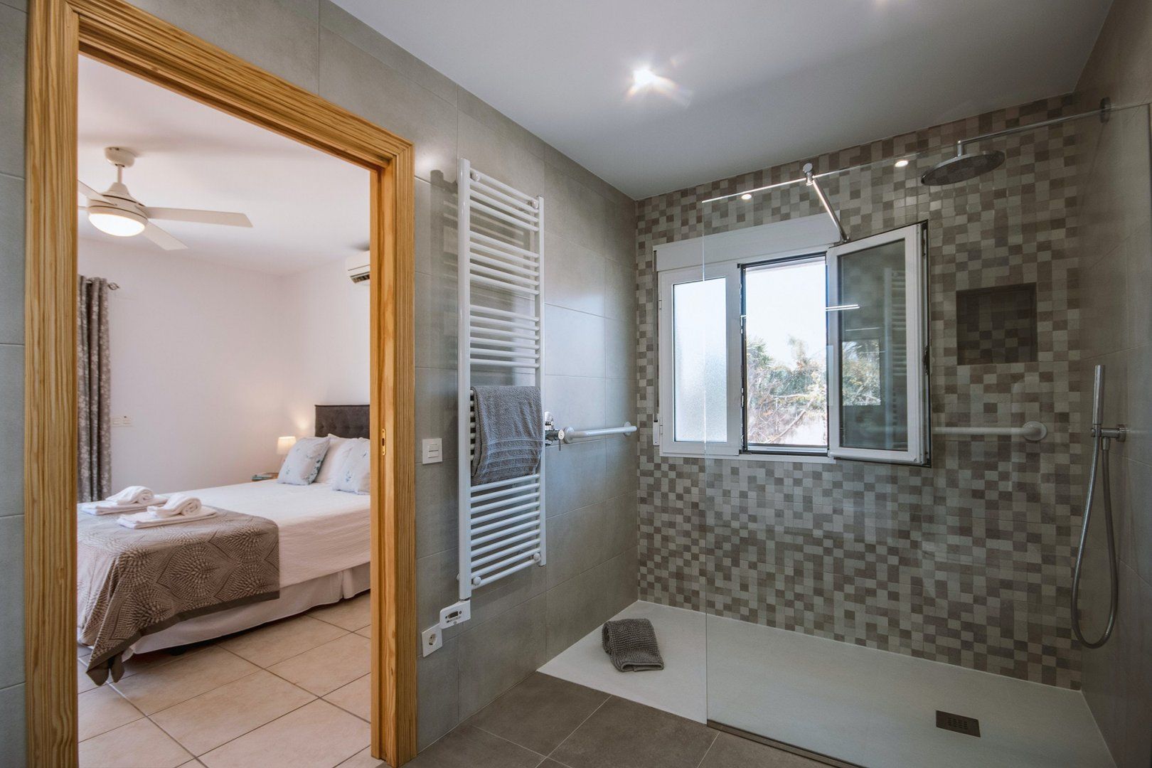Inside, the villa is cool and attractive. Traditional features like wooden beams sit alongside floor-to-ceiling glass sliding doors, blending the old and new. It’s bright and comfortable, with everything you might need during your stay – you can very happily spend your entire stay here. Cooks will enjoy the modern kitchen while romantics will be glad of the quiet terraces for nightcaps with a loved one.