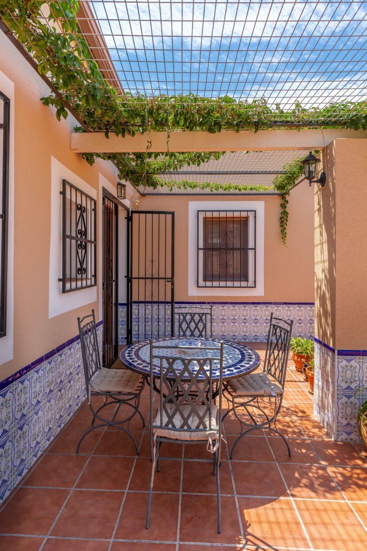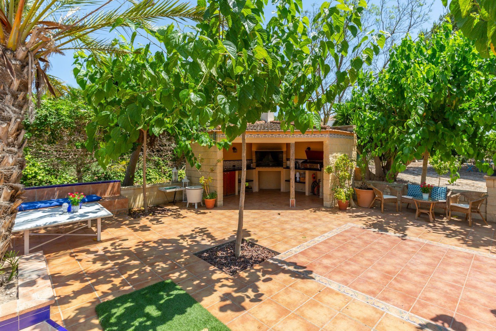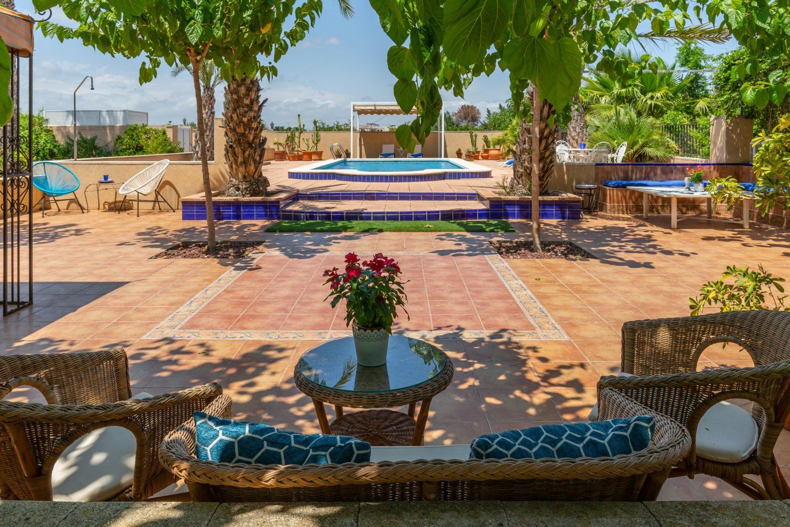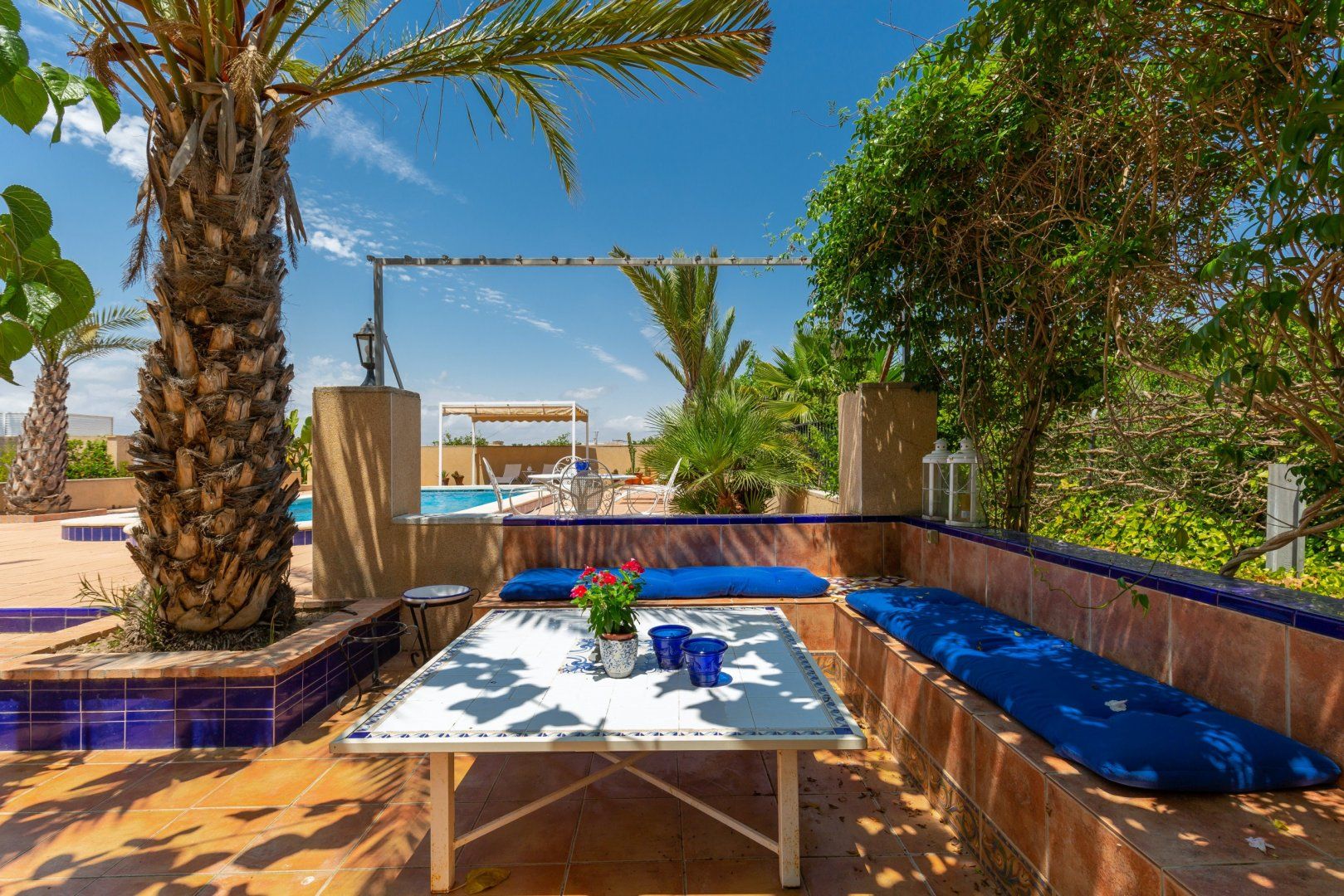 If you're looking for your own tropical paradise to take the family to, then look no further than this gorgeous Spanish home. Set on a huge plot of land, you'll have the freedom to roam around the beautifully tranquil patio and garden areas surrounding the villa. Wake up early and take in the golden morning sunshine on the terracotta tiled patio before serving up a family continental breakfast with café con leches in the garden. You will feel surrounded by nature here, with plenty of lush green spaces to enjoy. The star of the show is the swimming pool area though, which has palm trees dotted all around looking like they're part of a tropical chess board. We guarantee you'll be spending your afternoons here splashing around and making memories under the swaying palms.