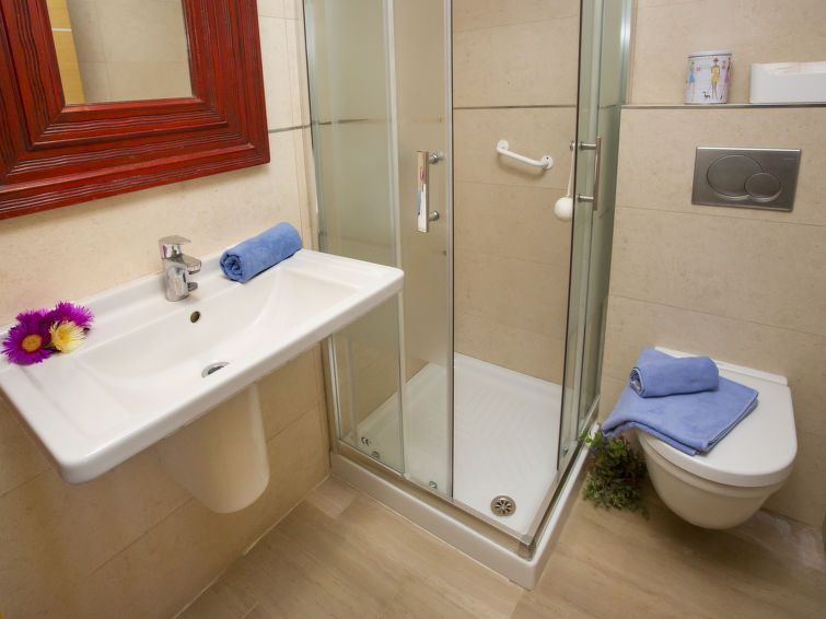 A highly recommended accommodation! The apartment is located on the 3rd floor, accessible by elevator from the underground parking garage. The entire apartment is equipped with a well-functioning air conditioning system...great! The living area opens onto a large terrace, where you can shade yourself during the day with a large retractable awning while enjoying the sea view. The apartment's amenities: everything is perfect! The garden, with two large pools and a whirlpool, is very well maintained. We would gladly return.