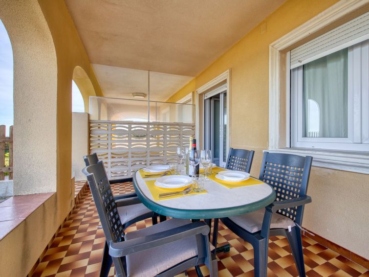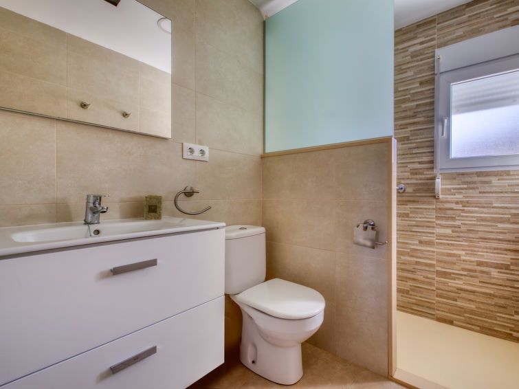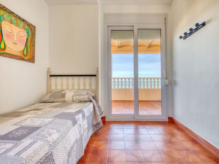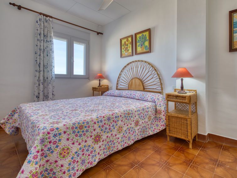 "Casita Mar", 5-room terraced house 160 m2 on 2 levels. Simple furnishings: living/dining room with satellite TV, digital TV and electric heater. Exit to the terrace, pergola. 1 room with 1 french bed (150 cm, length 190 cm), fan. Kitchen (oven, 4 ceramic glass hob hotplates, toaster, kettle, microwave, freezer, electric coffee machine).