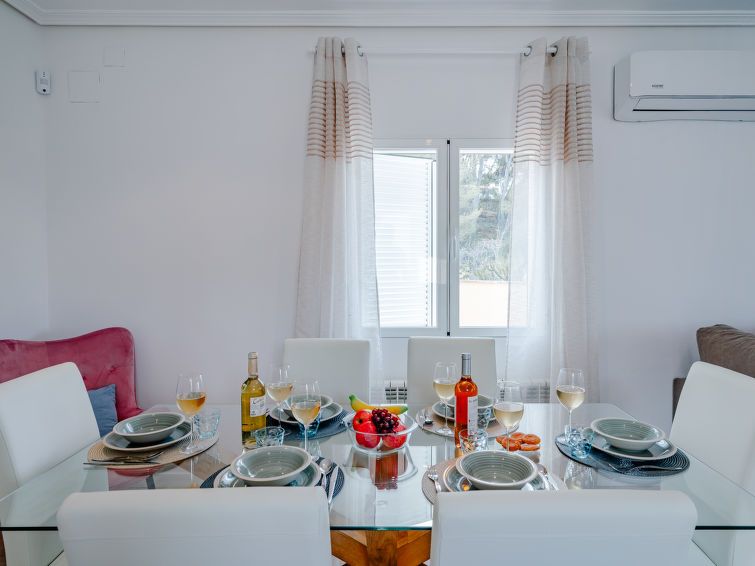 "Villa Coquette", 7-room villa 345 m2 on 2 levels. Spacious and bright, very beautiful and stylish furnishings: living/dining room with satellite TV, digital TV, air conditioning and forced-air heating. Exit to the terrace. 1 room with 1 french bed (150 cm, length 190 cm), fan. 1 room with 1 french bed (150 cm, length 200 cm), shower/WC, air conditioning and forced-air heating.