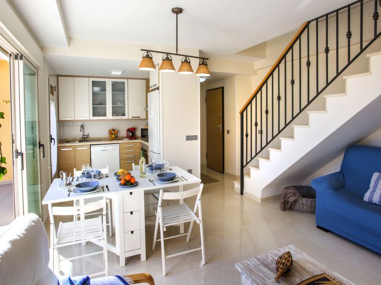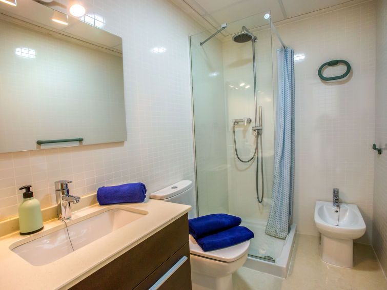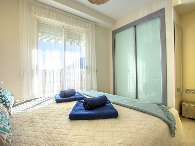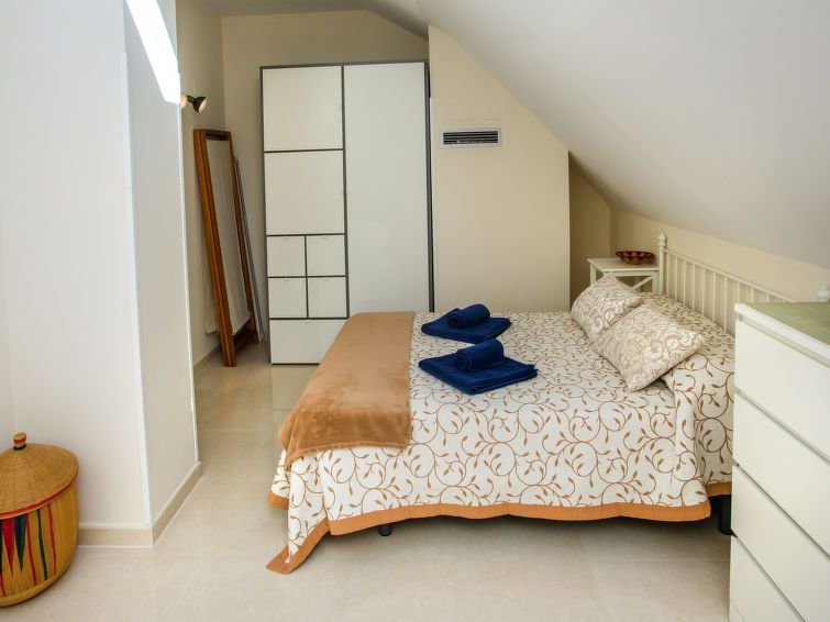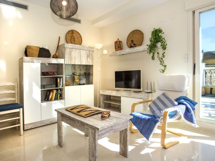 "Denia Plaza Bonita", 3-room penthouse 90 m2 on 2 levels. Spacious and bright, beautiful and cosy furnishings: living/dining room with digital TV, air conditioning and forced-air heating. Exit to the terrace. 1 room with 1 french bed (150 cm, length 200 cm), shower/bidet/WC, air conditioning and forced-air heating.