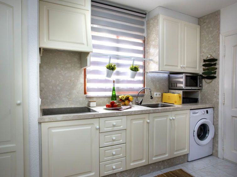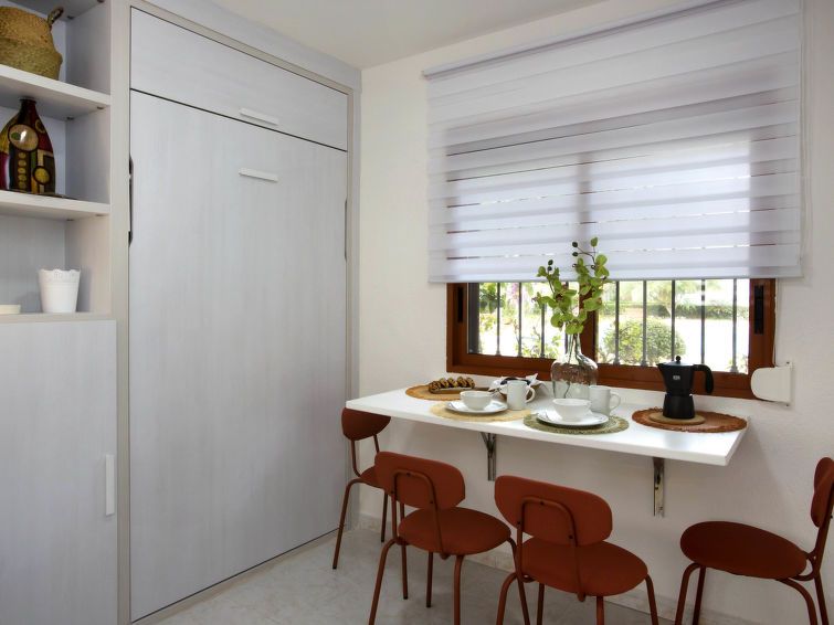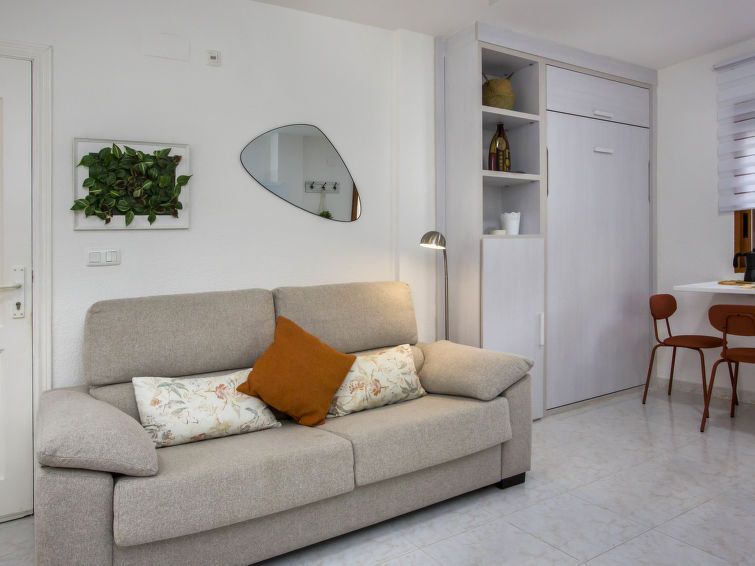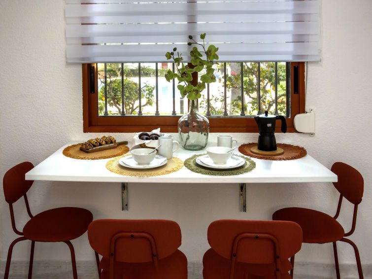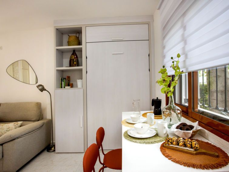 "El Patio", 2-room apartment 50 m2. Renovated in 2024, beautiful and cosy furnishings: living/dining room with 1 sofabed (135 cm, length 190 cm), digital TV, air conditioning, fan and forced-air heating. Exit to the patio, to the swimming pool. 1 room with 2 beds (105 cm, length 200 cm), fan.