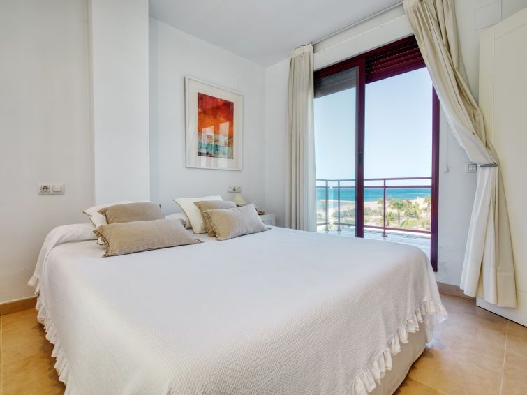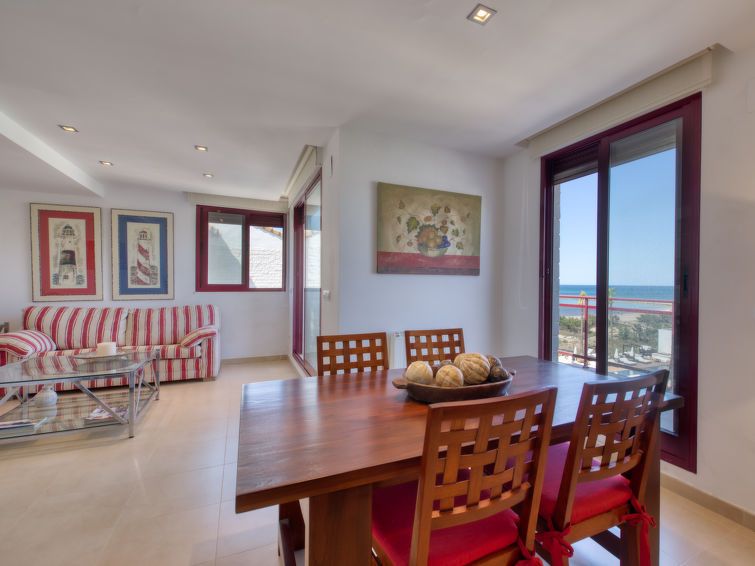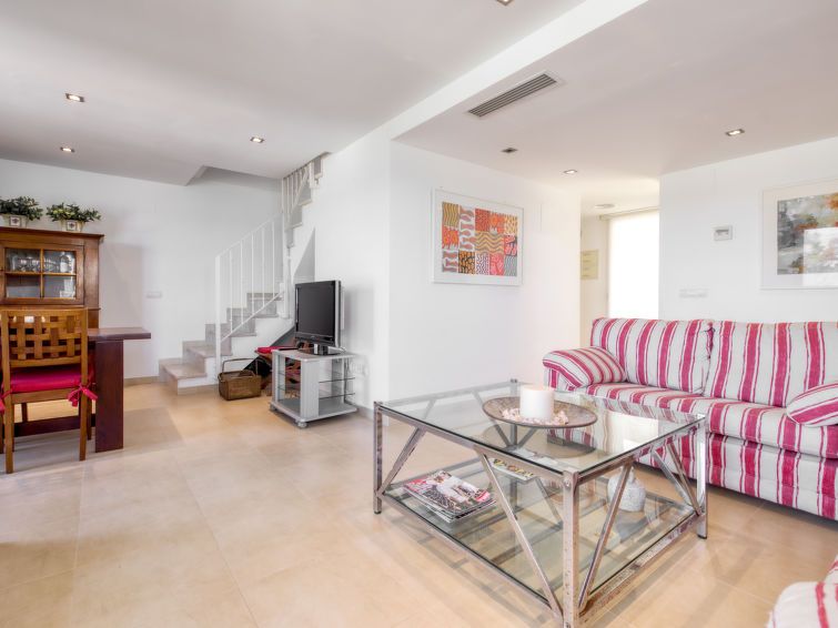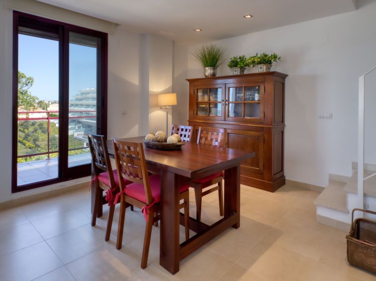 "Jardines de Denia VII", 4-room maisonette 91 m2 on 2 levels. Object suitable for 3 adults + 2 children. Spacious and bright, very beautiful and cosy furnishings: living/dining room with satellite TV, air conditioning and forced-air heating. Exit to the terrace. 1 room with 1 bed (90 cm, length 190 cm), air conditioning and forced-air heating.