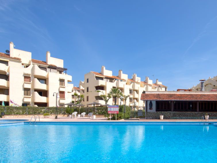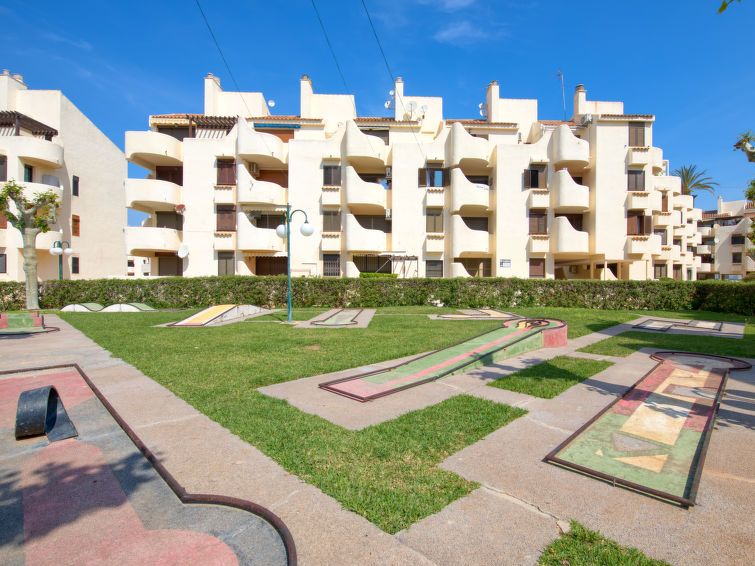 The apartment is on a ground floor, and it is appreciated, since the community does not have an elevator. It is located near the beach, it has everything you need in terms of kitchenware, the air conditioning works perfectly, and the pool is large and has extensive opening hours. We only have two complaints: the cockroaches, which enter through the hole next to the dishwasher, and the television, which only tunes to German channels. We requested that they change it for another, but it was not possible.
