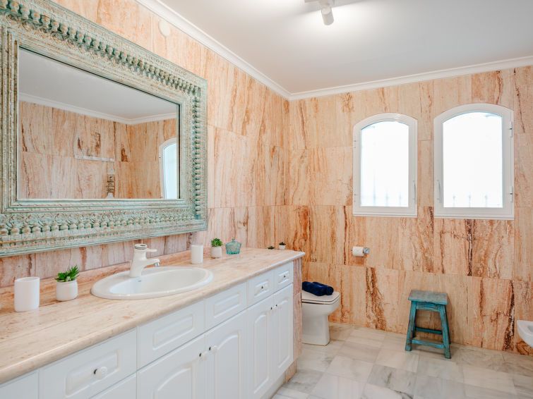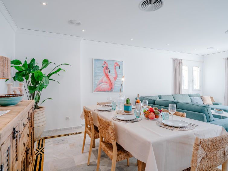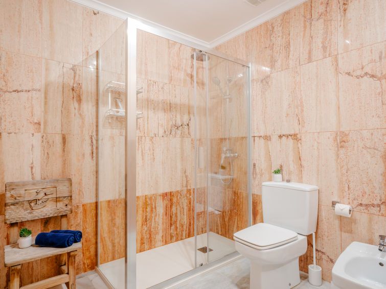 "L'Alberca Plus", 3-room apartment 120 m2 on 2nd floor. Spacious and bright, very beautiful and stylish furnishings: living/dining room with digital TV, air conditioning and forced-air heating. Exit to the terrace. 1 room with 1 french bed (180 cm, length 200 cm), shower/bidet/WC, air conditioning, fan and forced-air heating.