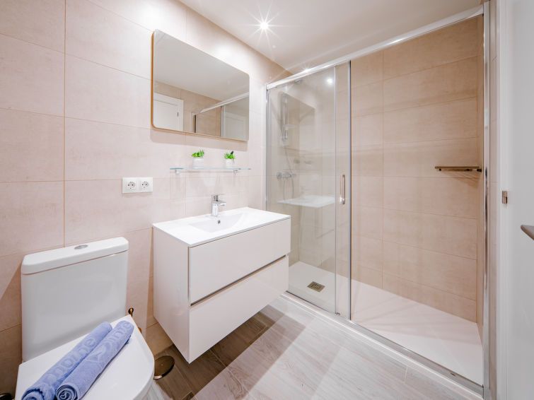 "Marina Real III Plus", 4-room apartment 83 m2 on 3 levels. Spacious, very modern and stylish furnishings: living/dining room with satellite TV, air conditioning and forced-air heating. Exit to the terrace. 1 room with 1 french bed (160 cm, length 200 cm), shower/WC, air conditioning and forced-air heating.