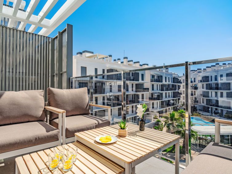 "Marina Real III", 3-room apartment 72 m2 on 3 levels. Spacious and bright, very beautiful and stylish furnishings: living/dining room with digital TV, air conditioning and forced-air heating. Exit to the terrace. 1 room with 1 french bed (160 cm, length 200 cm), shower/WC, air conditioning and forced-air heating.