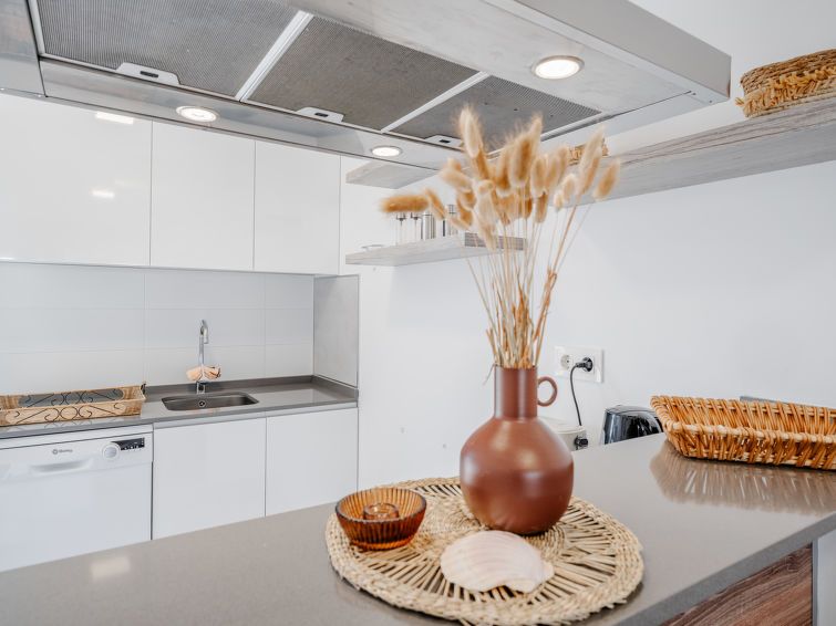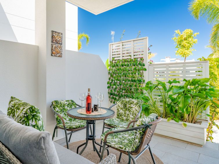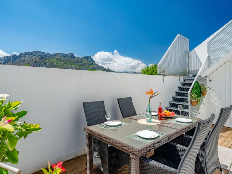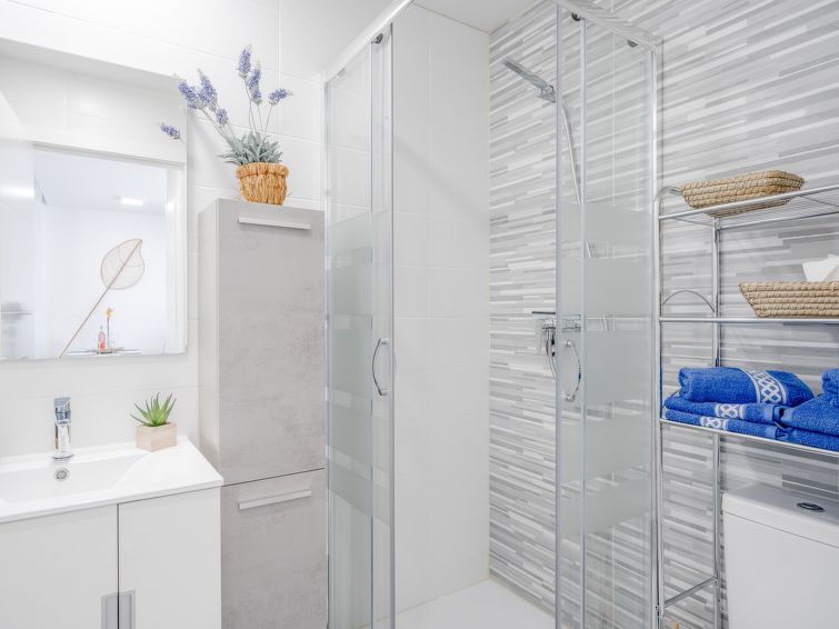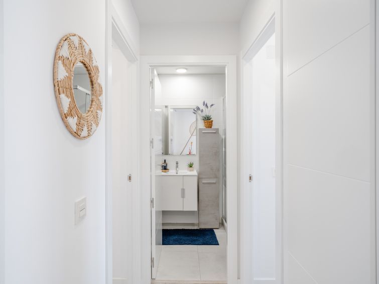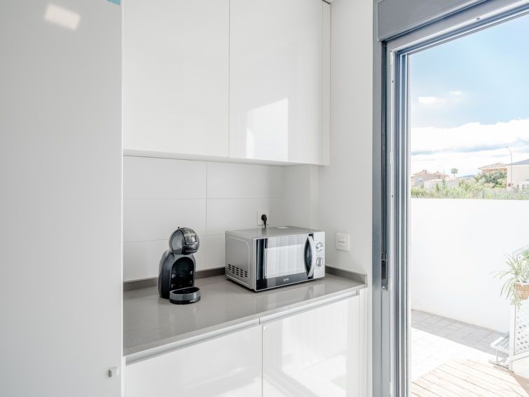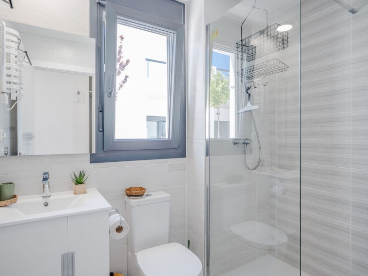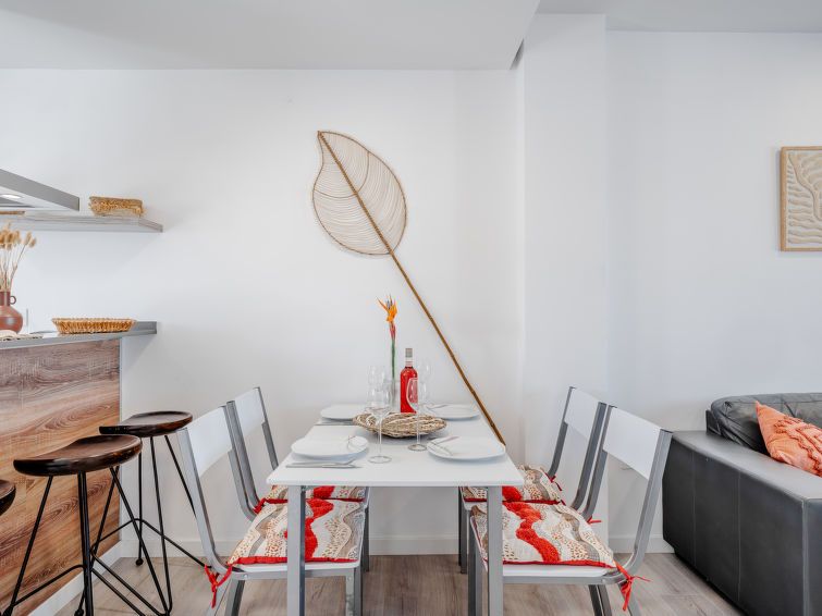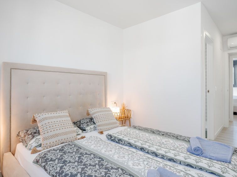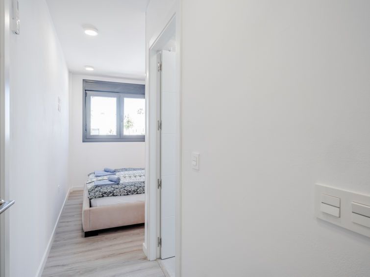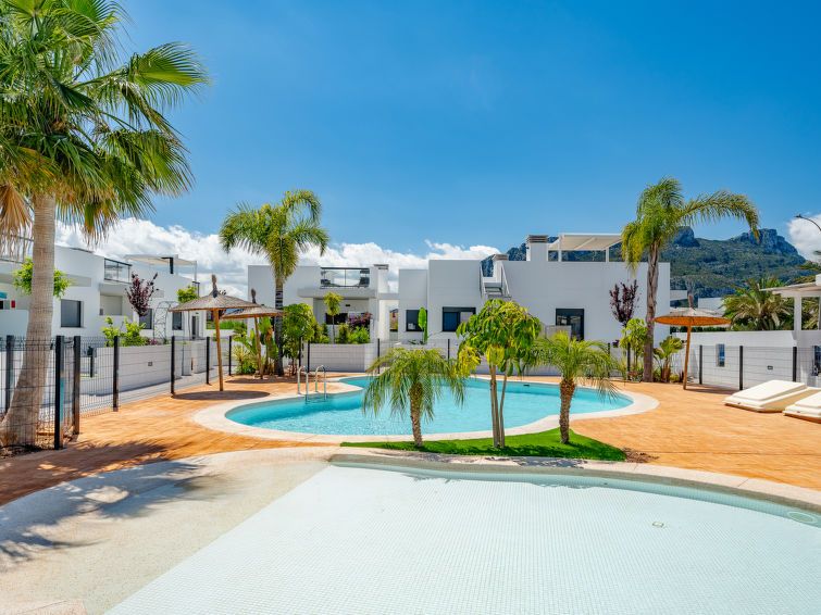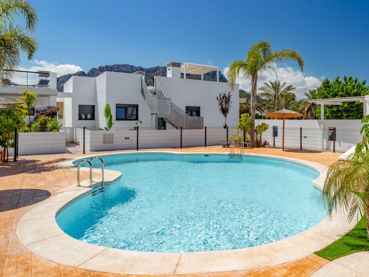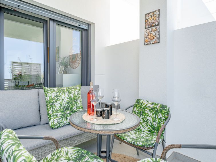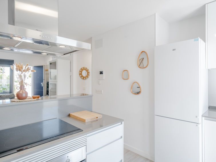 "Vergel Beach", 3-room semi-detached house 80 m2. Spacious and bright, very beautiful and stylish furnishings: living/dining room with satellite TV, air conditioning and forced-air heating. Exit to the terrace, to the swimming pool. 1 room with 1 french bed (150 cm, length 200 cm), shower/WC, air conditioning and forced-air heating.