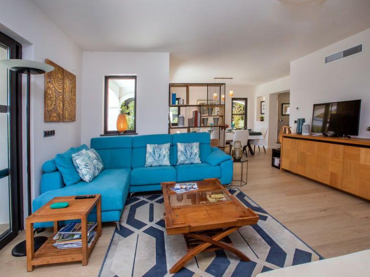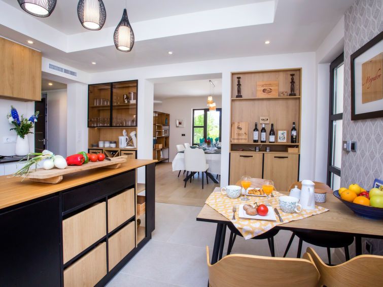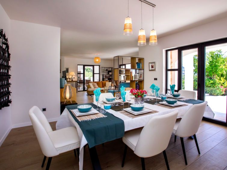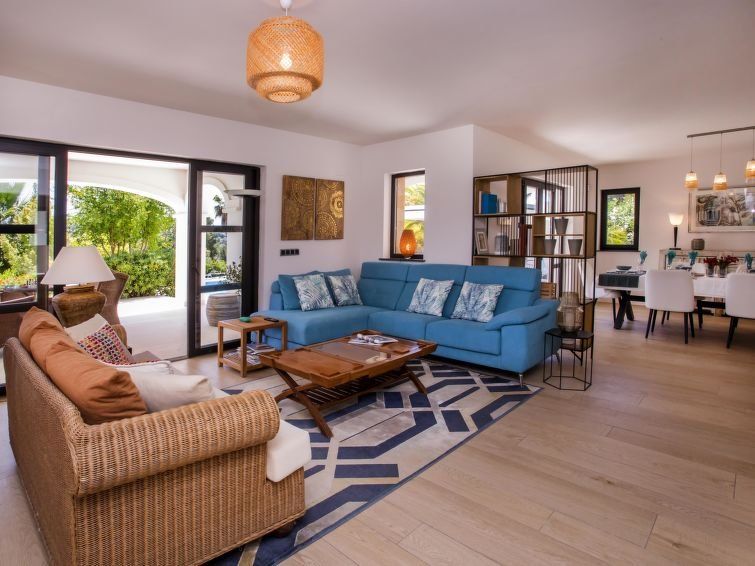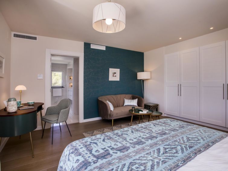 "Villa Almandrina", 6-room villa 270 m2 on 2 levels. Spacious and bright, very beautiful and stylish furnishings: living/dining room 50 m2 with digital TV, air conditioning and forced-air heating. Exit to the patio, to the swimming pool. Office with air conditioning and forced-air heating.