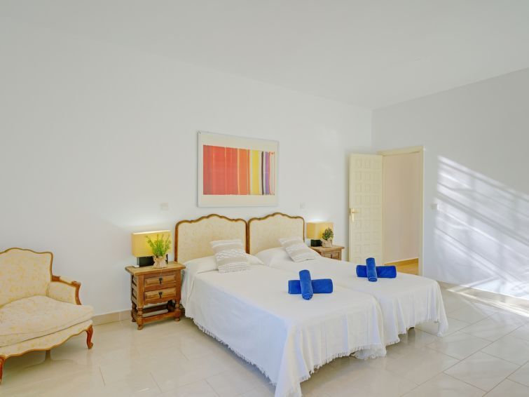 4-room villa 200 m2, on the upper floor. Comfortable and cosy furnishings: living room 34 m2 with cable TV (flat screen), hi-fi system and DVD. 1 large room 44 m2 with Dressing room with 1 french bed (2 x 90 cm, length 190 cm), bath/shower/bidet/WC and air conditioning. 1 large room 24 m2 with 1 french bed (2 x 90 cm, length 200 cm), air conditioning.