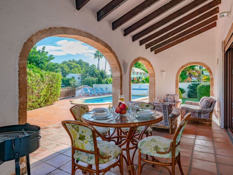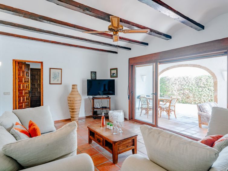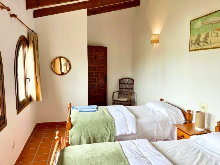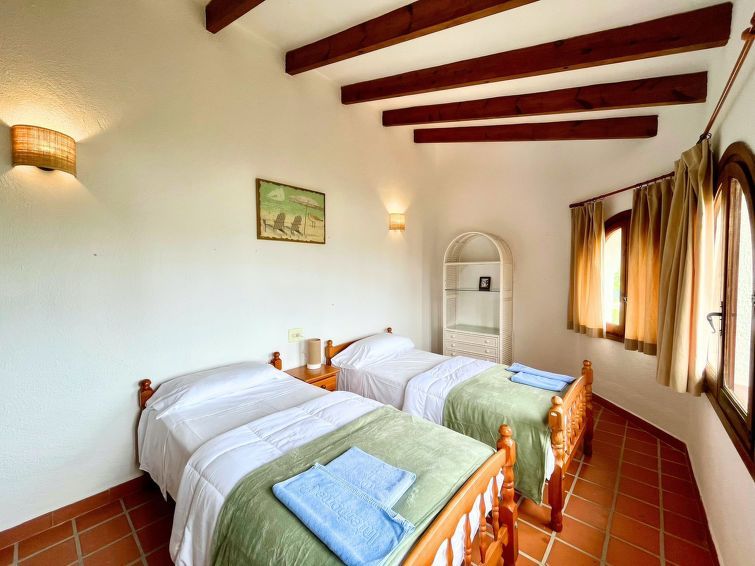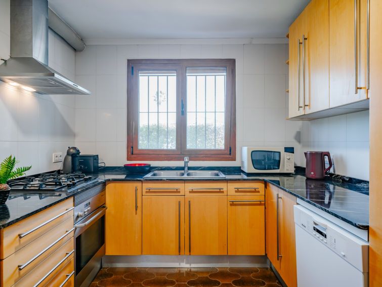 "Casa Bea", 4-room house 120 m2 on 2 levels. Spacious and bright, practical furnishings: living/dining room with digital TV and fan. Exit to the patio, to the swimming pool. 1 room with 1 french bed (140 cm, length 200 cm), fan. 1 room with 2 beds (90 cm, length 200 cm), fan. Kitchen (4 hot plates, oven, dishwasher, toaster, microwave, freezer, electric coffee machine).