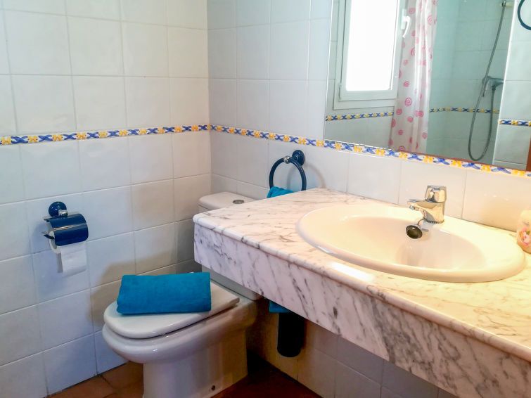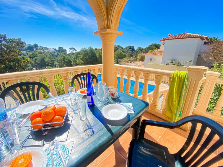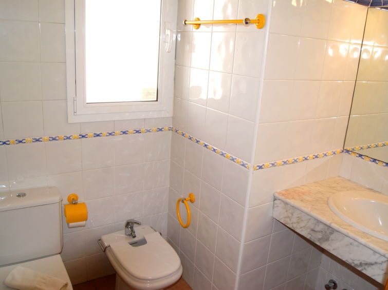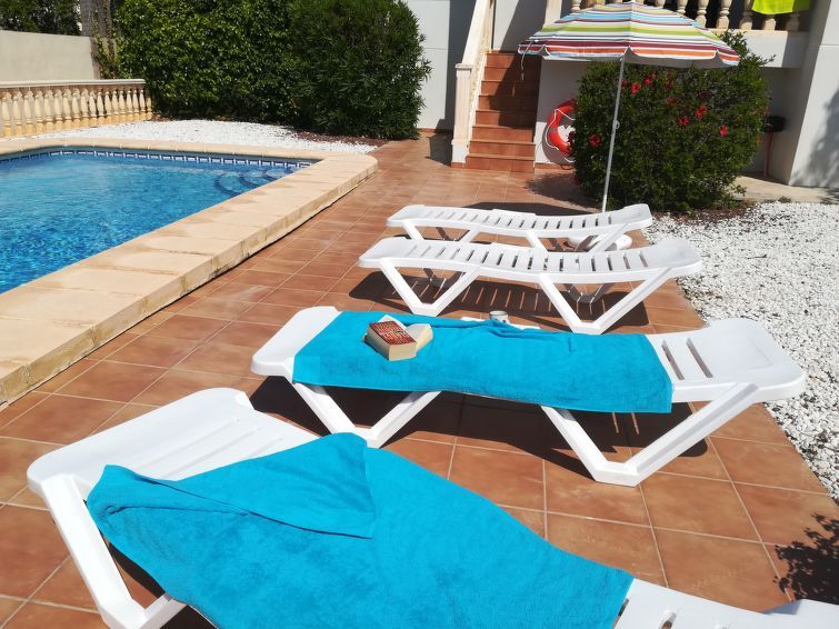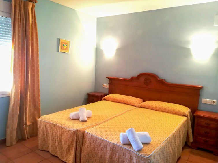 "Canela", 3-room house 95 m2. Bright, comfortable furnishings: living/dining room with TV and satellite TV (flat screen), air conditioning and forced-air heating. Exit to the terrace, to the swimming pool. 1 room with 1 french bed (140 cm, length 190 cm). 1 room with 2 beds (90 cm), air conditioning and forced-air heating.