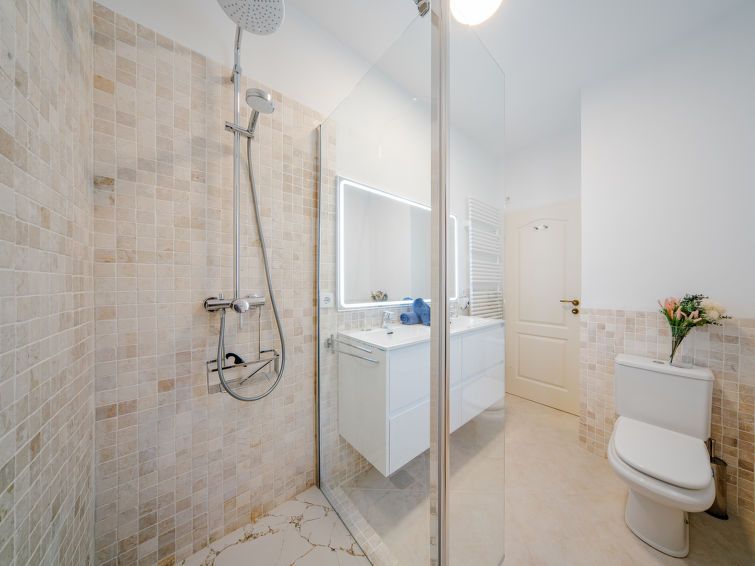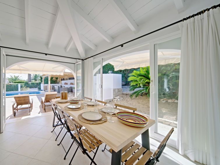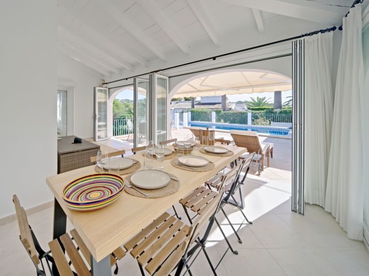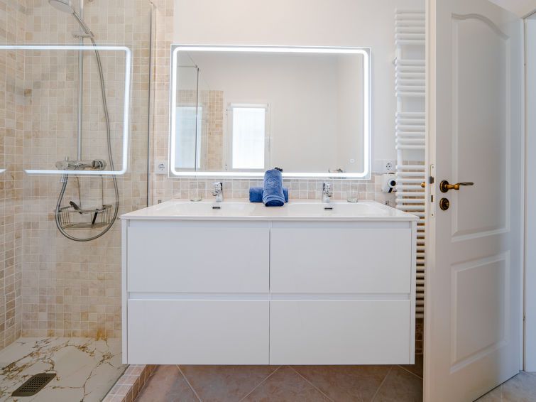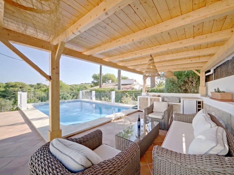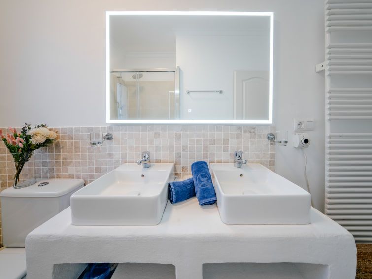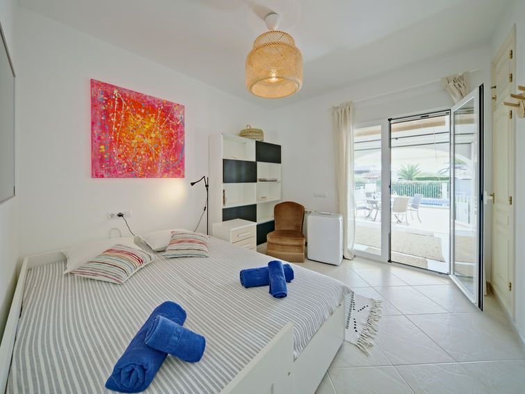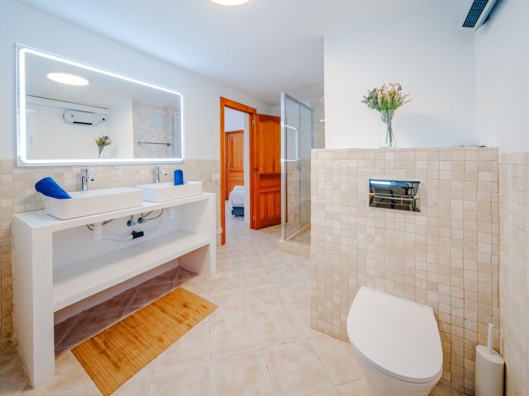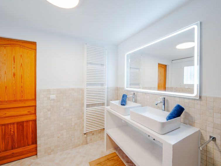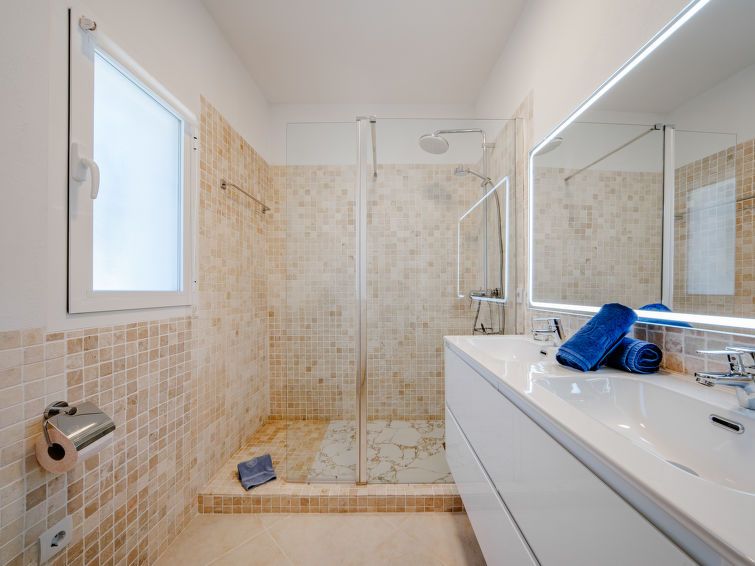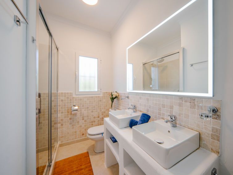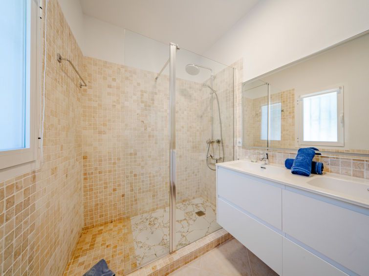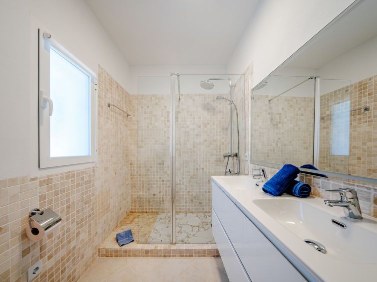 "Aika", 5-room house 250 m2 on 2 levels. Spacious and bright, comfortable and cosy furnishings: living/dining room with digital TV, air conditioning and forced-air heating. Exit to the patio, to the swimming pool. 1 room with 1 french bed (2 x 90 cm, length 200 cm), shower/WC, double hand-basin, air conditioning and forced-air heating.