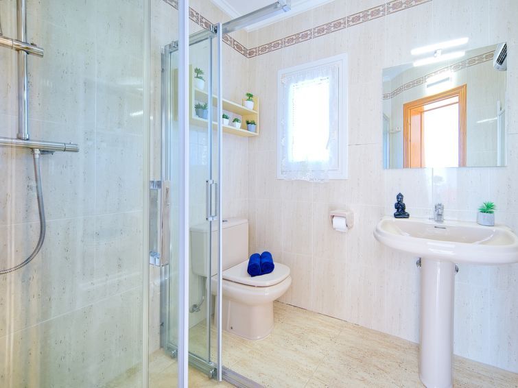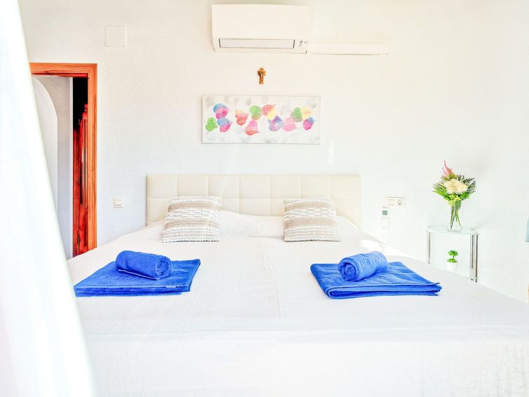 "Casa Los Caracoles", 4-room house 170 m2 on 2 levels. Spacious and bright, comfortable and cosy furnishings: living/dining room with digital TV, air conditioning and forced-air heating. Exit to the terrace, to the swimming pool. 1 room with 1 double bed (2 x 90 cm, length 200 cm), digital TV, air conditioning, fan and forced-air heating.