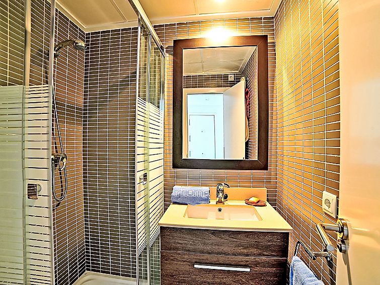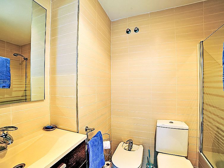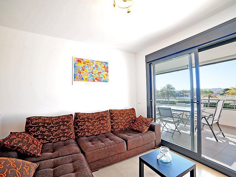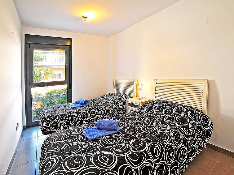 3-room apartment 75 m2 on 1st floor. Spacious and bright, very comfortable and tasteful furnishings: living/dining room with digital TV and air conditioning. Exit to the terrace. 1 room with 2 beds and air conditioning. 1 room with 1 french bed (2 x 150 cm), bath/bidet/WC and air conditioning.