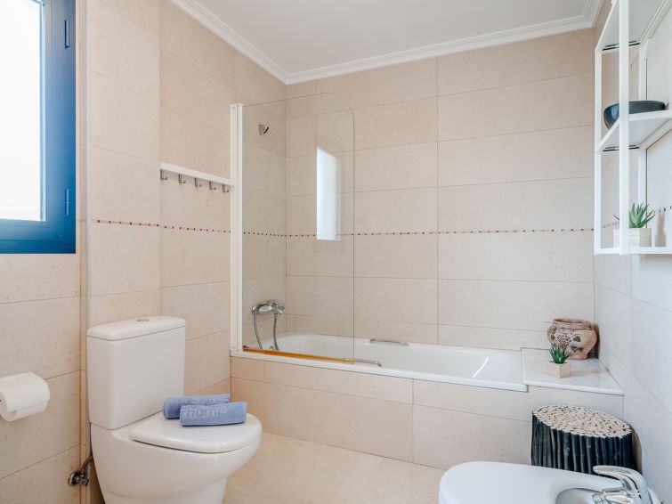 "Jardines del Pla", 4-room maisonette 180 m2 on 2 levels. Spacious and bright, very beautiful and stylish furnishings: living/dining room with digital TV, air conditioning and forced-air heating. Exit to the terrace. 1 room 12 m2 with 1 french bed (180 cm, length 200 cm), shower/bidet/WC, air conditioning and forced-air heating.