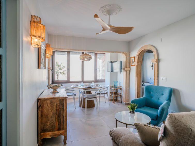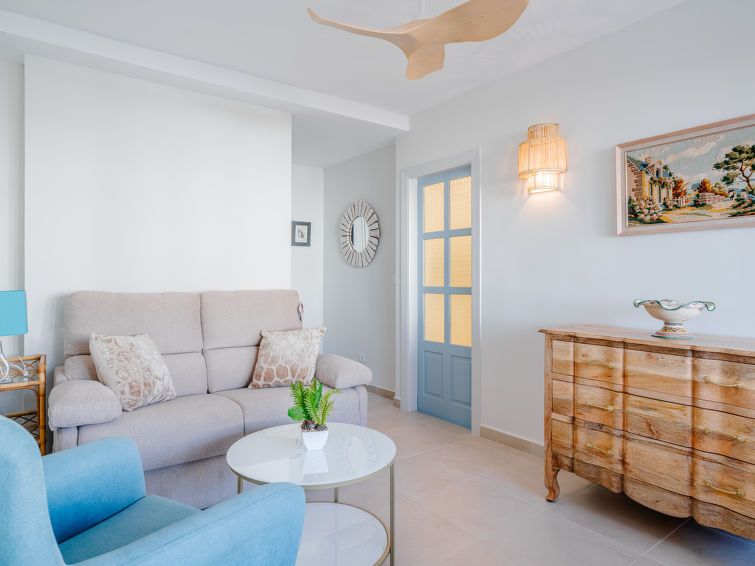 "Las Pergolas Sun", 2-room apartment 60 m2 on 2nd floor. Spacious and bright, fully renovated in 2025, very beautiful and stylish furnishings: living/dining room with 1 double sofabed (150 cm, length 200 cm), digital TV, air conditioning, fan and forced-air heating. 1 room with 1 french bed (160 cm, length 200 cm), air conditioning and forced-air heating.