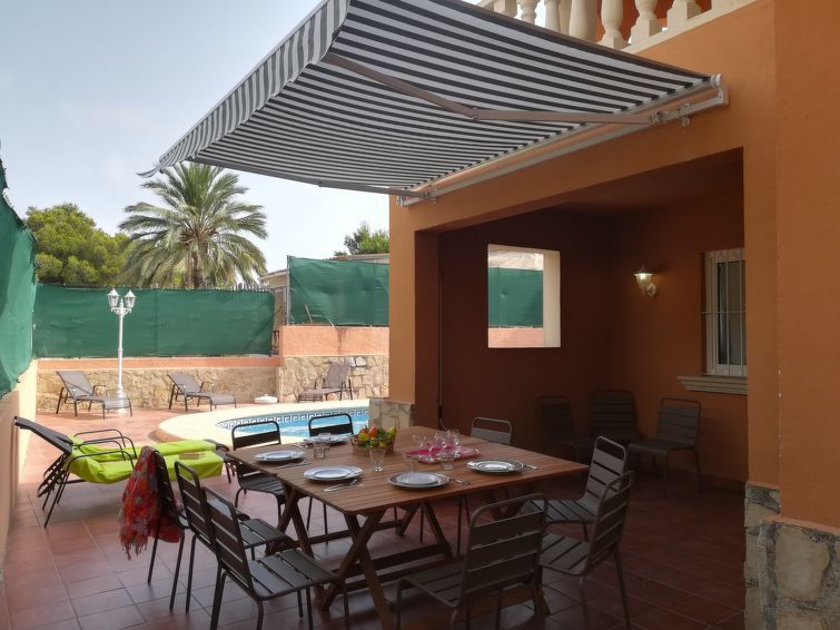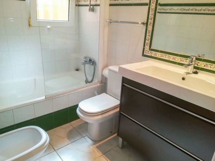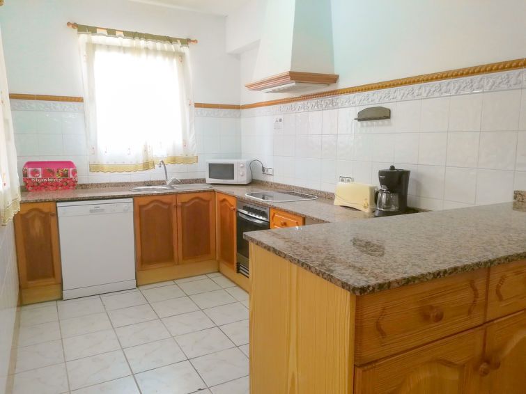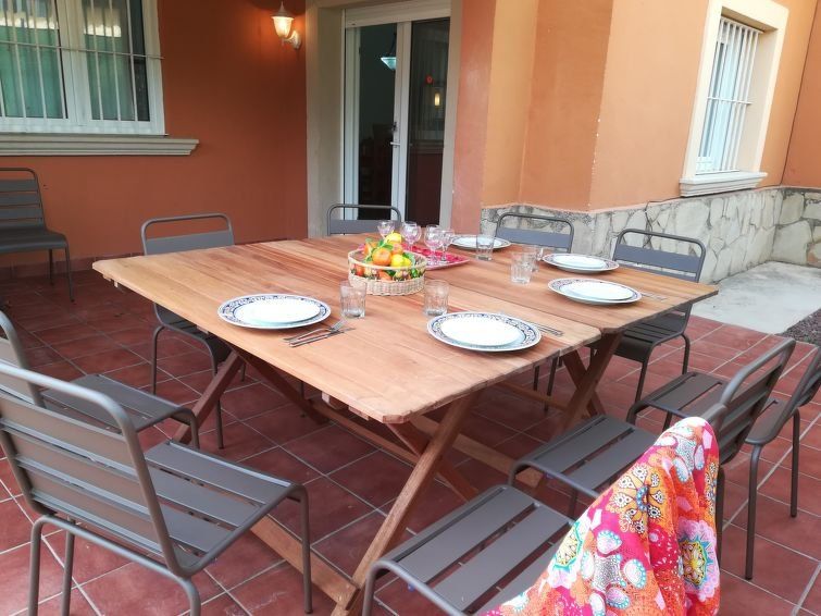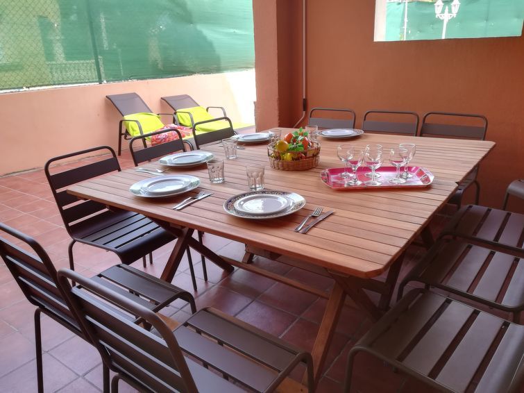 "Maracuya", 7-room villa 160 m2 on 2 levels. Bright, comfortable furnishings: living/dining room with satellite TV (flat screen). 1 room with 1 french bed and bath/WC. 1 room with 2 beds (90 cm), shower/WC. Open kitchen (oven, dishwasher, 3 ceramic glass hob hotplates, toaster, kettle, microwave, electric coffee machine) with dining table.