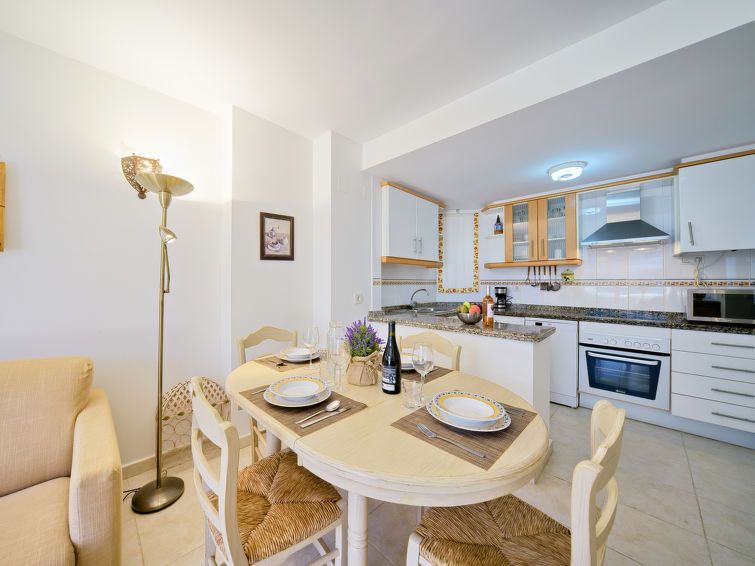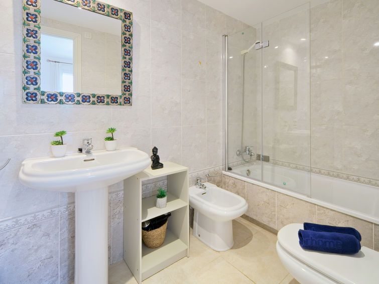 "Nou Fontana", 3-room apartment 60 m2. Comfortable and stylish furnishings: living/dining room with digital TV, air conditioning and forced-air heating. Exit to the terrace. 1 room with 1 french bed (150 cm, length 200 cm), bath/bidet/WC, air conditioning and forced-air heating. 1 room with 1 x 2 bunk beds (80 cm, length 190 cm).