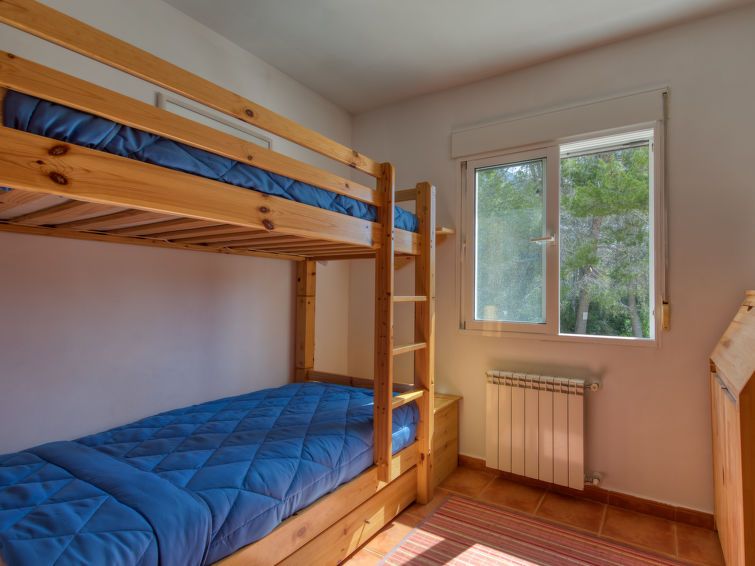 4-room house 106 m2. Tasteful furnishings: living/dining room with panoramic window with open-hearth fireplace, satellite TV, hi-fi system, DVD and air conditioning. Exit to the terrace. 1 room with 1 french bed (140 cm, length 200 cm), satellite TV and air conditioning. 1 room with 1 x 2 bunk beds (90 cm, length 200 cm), satellite TV and air conditioning.