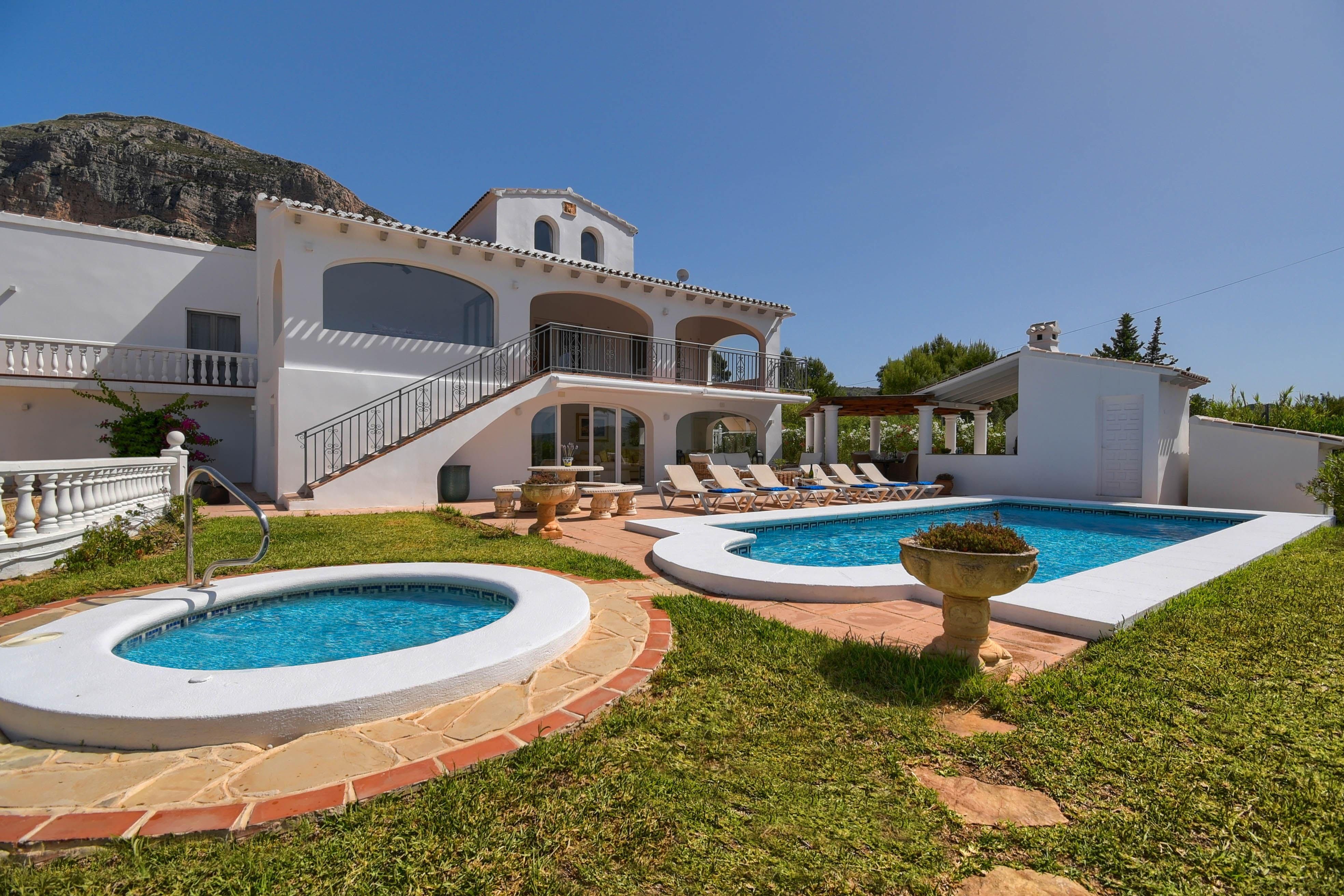 This quintessentially Spanish villa makes a great home to spend a happy summer holiday in. It is based in the beautiful region of Javea in Alicante, just a short drive from the stunning Parc Natural del Montgó, ideal for those looking to explore some Spanish nature. Inside, the home is charming and characterful, with a mix of traditional touches and modern flair – the outside is where this home truly shines, however. Here, you'll find a stunning private pool, as well as a hot tub for resting weary muscles after long hikes in the hills. There's also an outdoor kitchen and dining area for alfresco feasting, and terraces where you can sit and enjoy the views of the mountains.