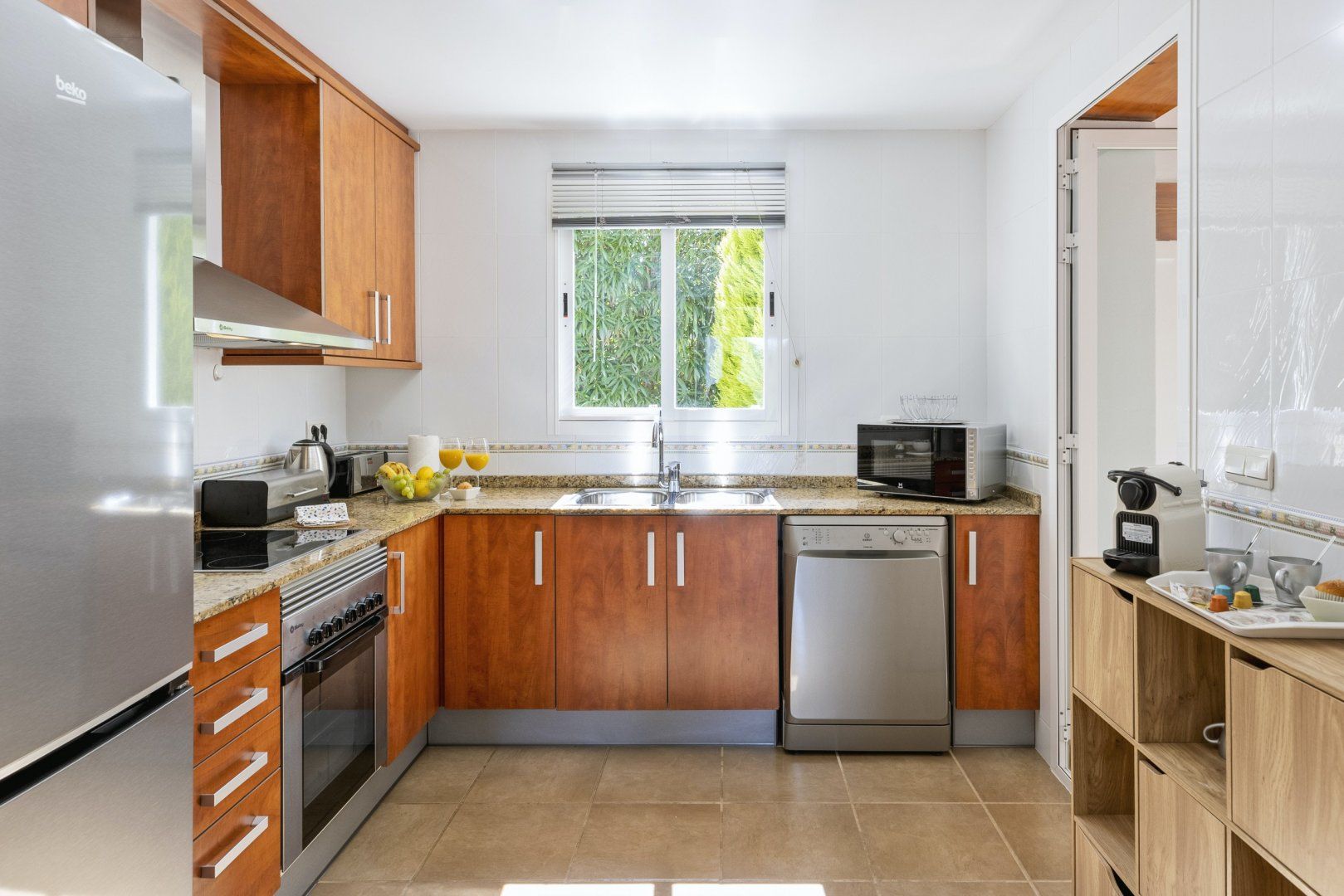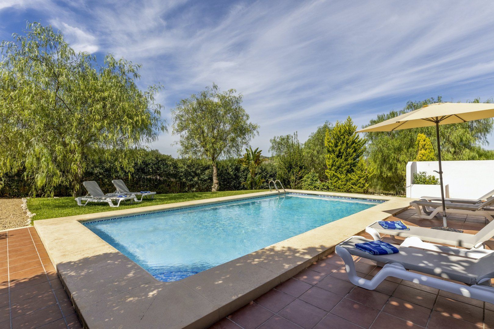 Wake up on sunny mornings and head outside to lay on a lounger with a freshly squeezed orange juice and a good book. As the heat rises, get some shade under one of the leafy trees, or cool off with a swim and a splash in the pool. If you want to venture out, head to Arenal beach for sunbathing and sea-swimming, or tee off at Javea’s golf course, based just 5km away. Head home and fire up the barbecue to grill some Spanish chicken and dine all together around your alfresco table. In the evenings, gather on your shaded terrace and toast to your beautiful getaway.